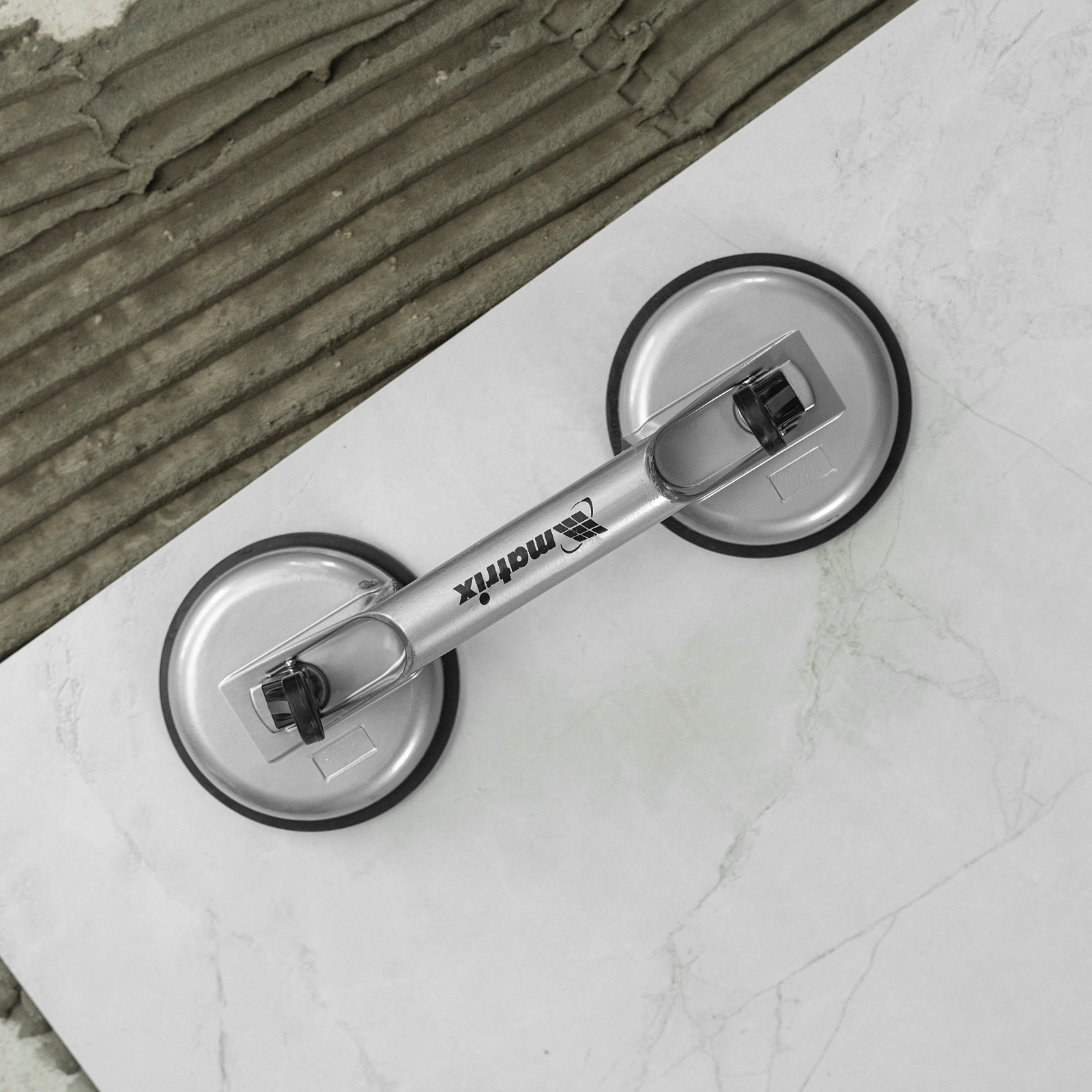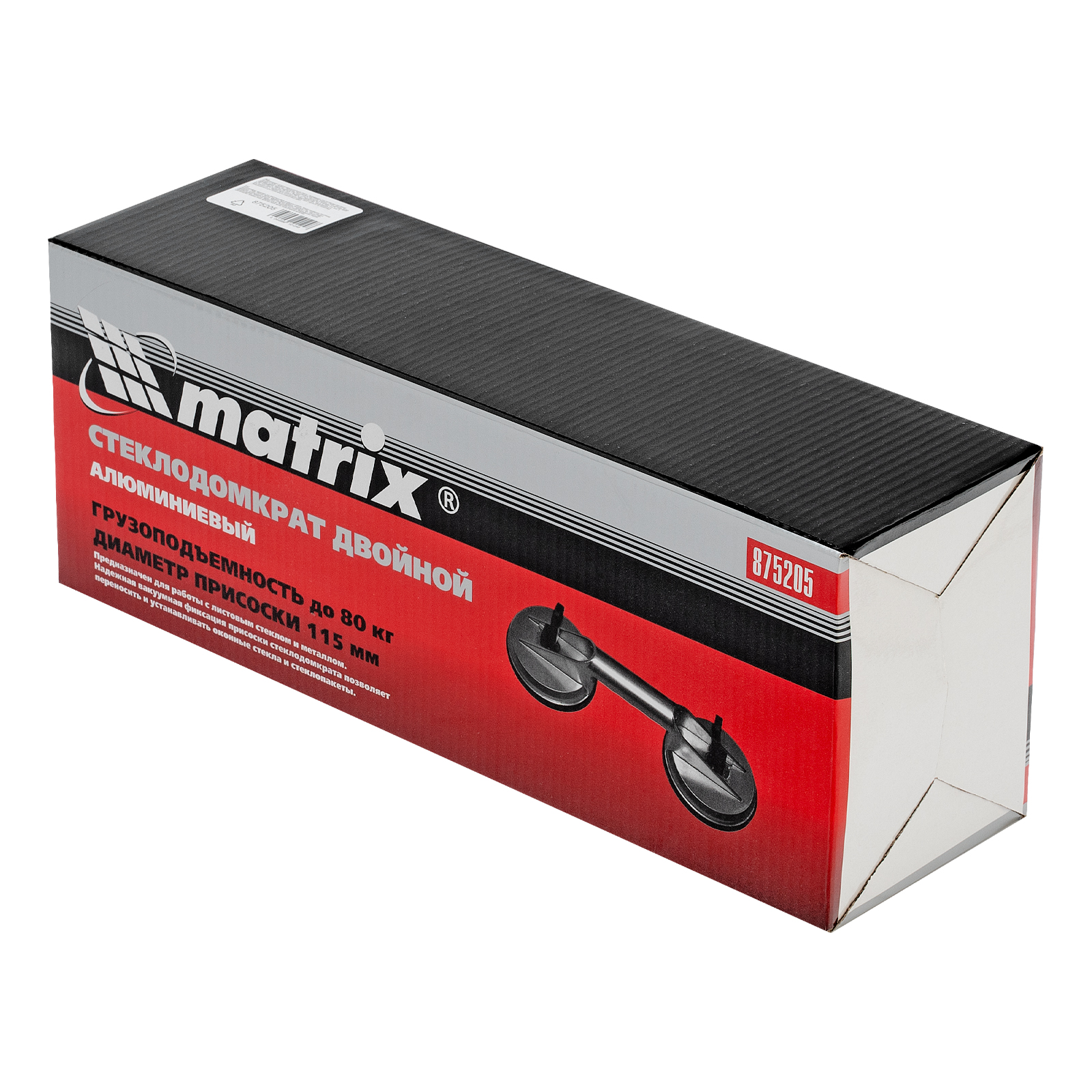 Алюминиевый двойной стеклодомкрат Matrix 875205 позволяет поднимать, переносить и устанавливать стекла, зеркала, плитку, листовой металл и другие гладкие материалы. Имеет две вакуумные присоски, которые бережно и надежно фиксируются на поверхности при помощи зажимов. Стеклодомкрат позволяет длительное время удерживать груз весом до 80 кг. Будет полезен во время строительства, ремонта, а также пригодится в быту.