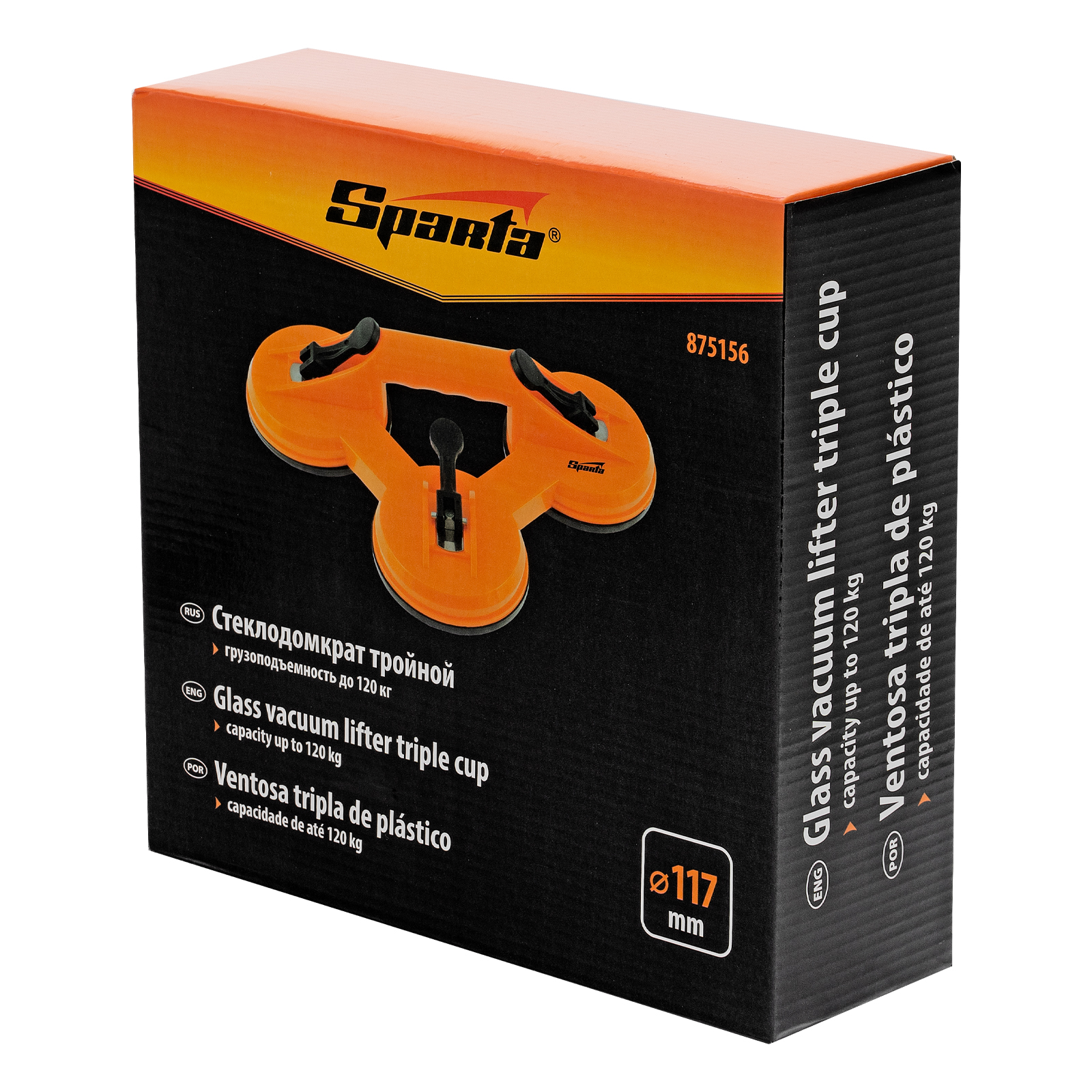 Тройной пластиковый стеклодомкрат Sparta 875156 — устройство для удержания, переноски и установки зеркал, стекол, столешниц, кафельной плитки и других гладких материалов. Три вакуумные присоски имеют зажимы, которые бережно, но крепко фиксируют их на поверхности. Стеклодомкрат будет полезен во время ремонта, а также пригодится в быту.