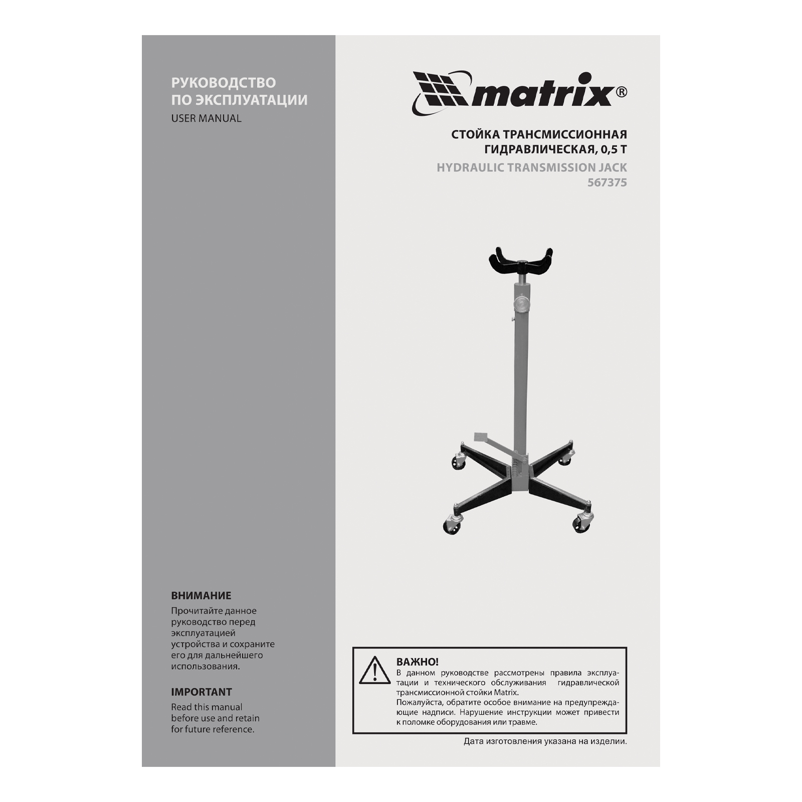 Стойка трансмиссионная гидравлическая, 0.5 т, H подъема 1130-1945 мм Matrix в Воронеже