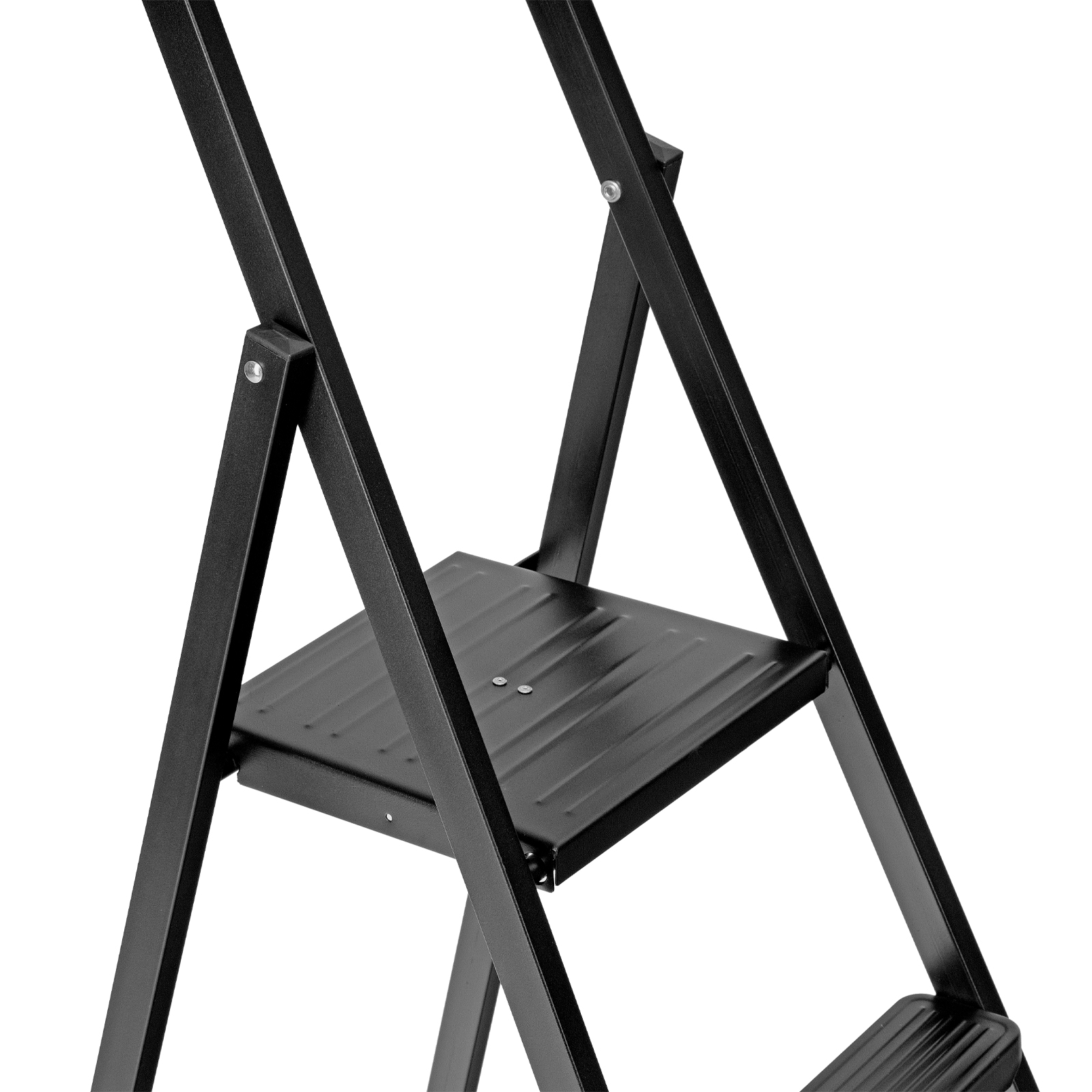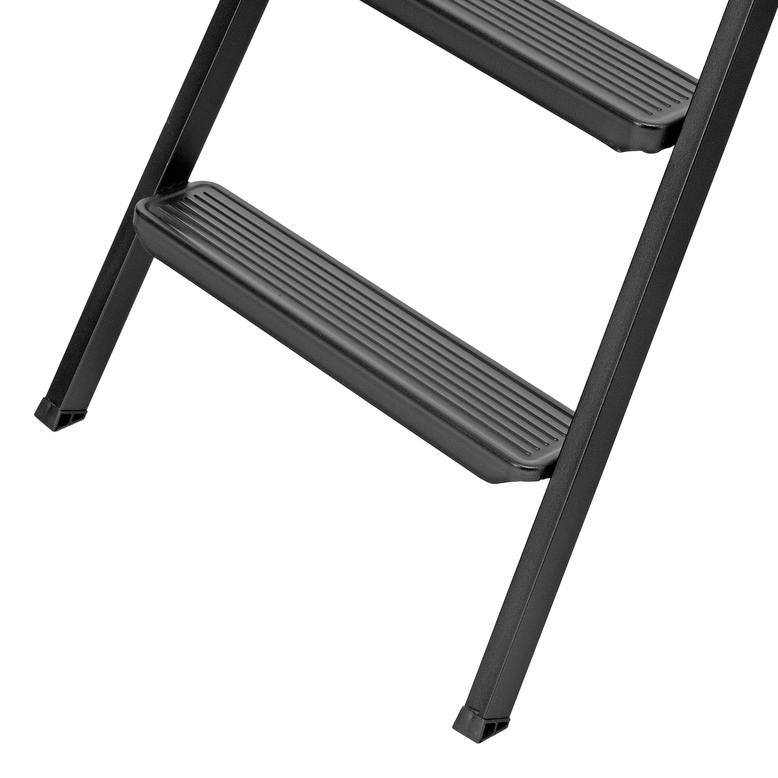 - Долговечность — антрацитовое покрытие порошковой эмалью защищает стремянку от коррозии.