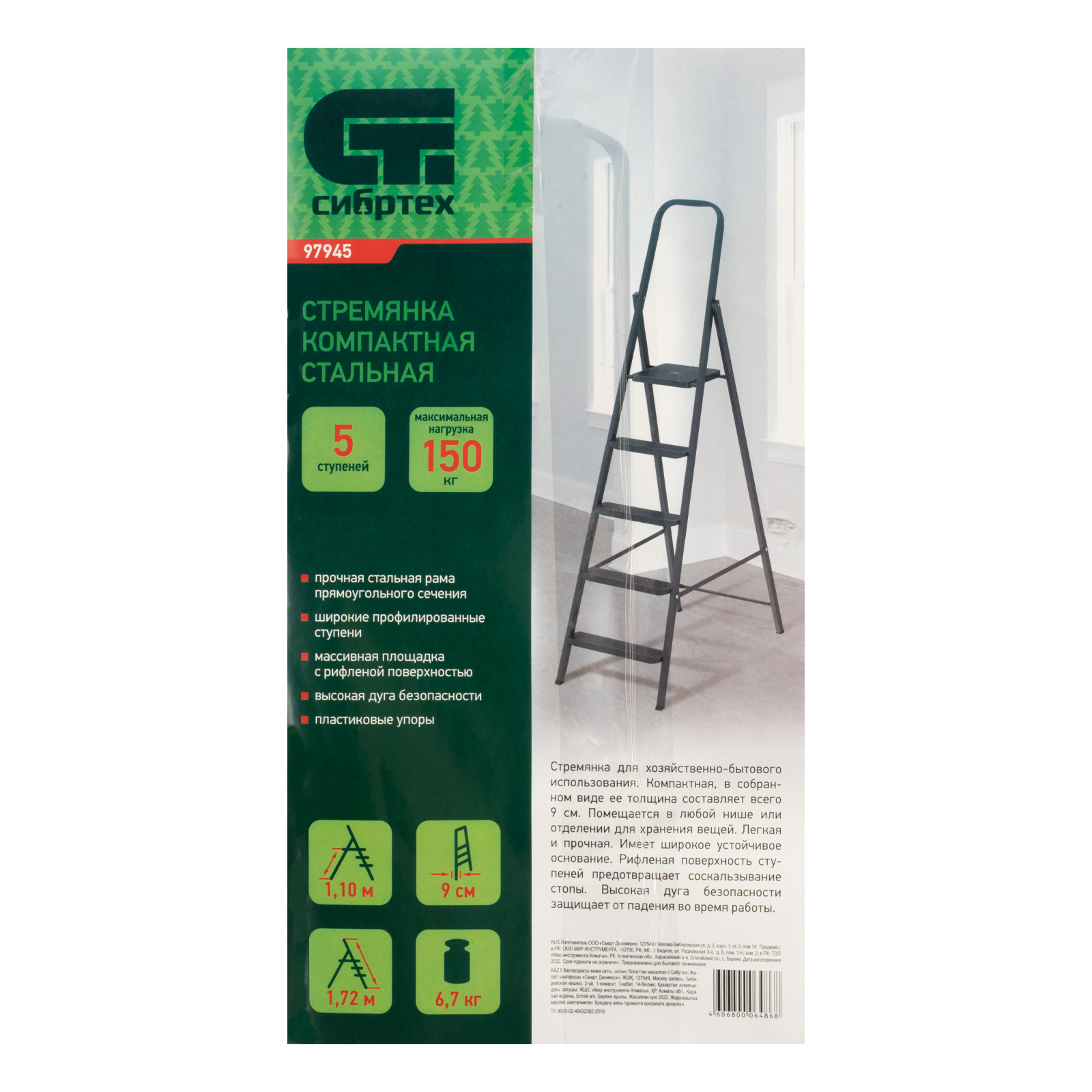 Стремянка 5 ступеней, компактная, стальная Сибртех в Воронеже