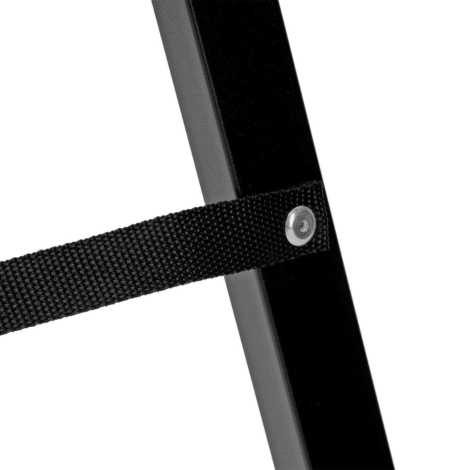 - Надежная фиксация в рабочем положении — на верхней площадке имеются специальные зацепы, опоры дополнительно удерживаются страховочными лентами.