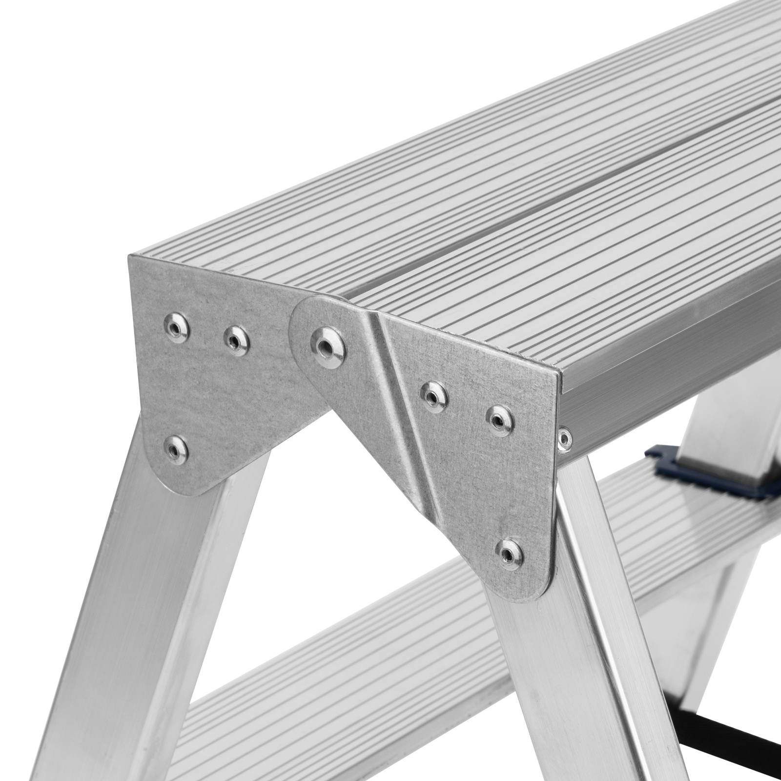 - Продуманная конструкция — нейлоновые страховочные стяжки повышают надежность фиксации стремянки в рабочем положении.