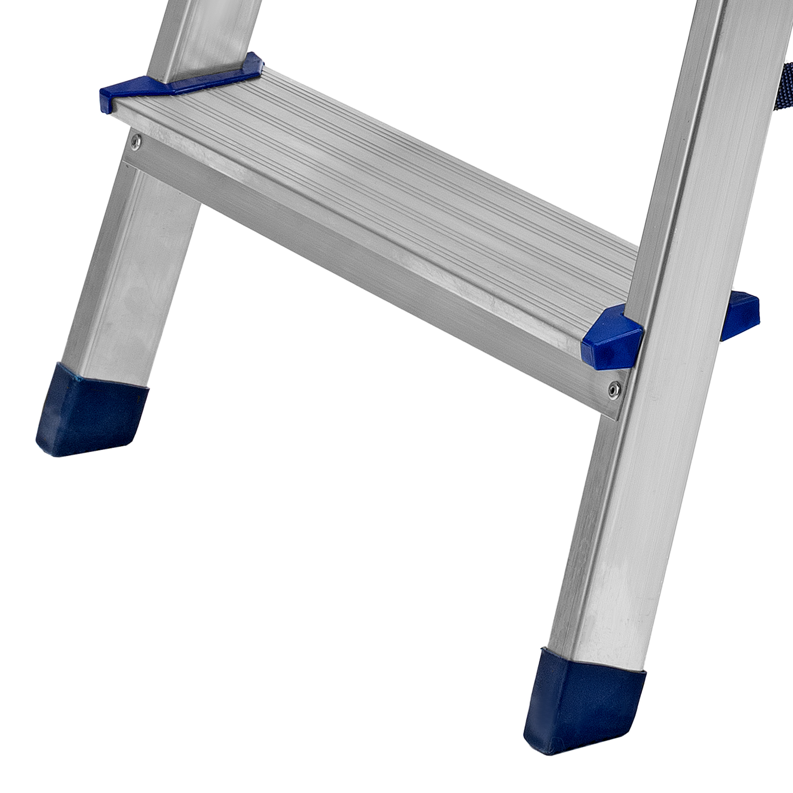 - Долговечность — стремянка выполнена из легкого, но прочного алюминия, устойчивого к коррозии.