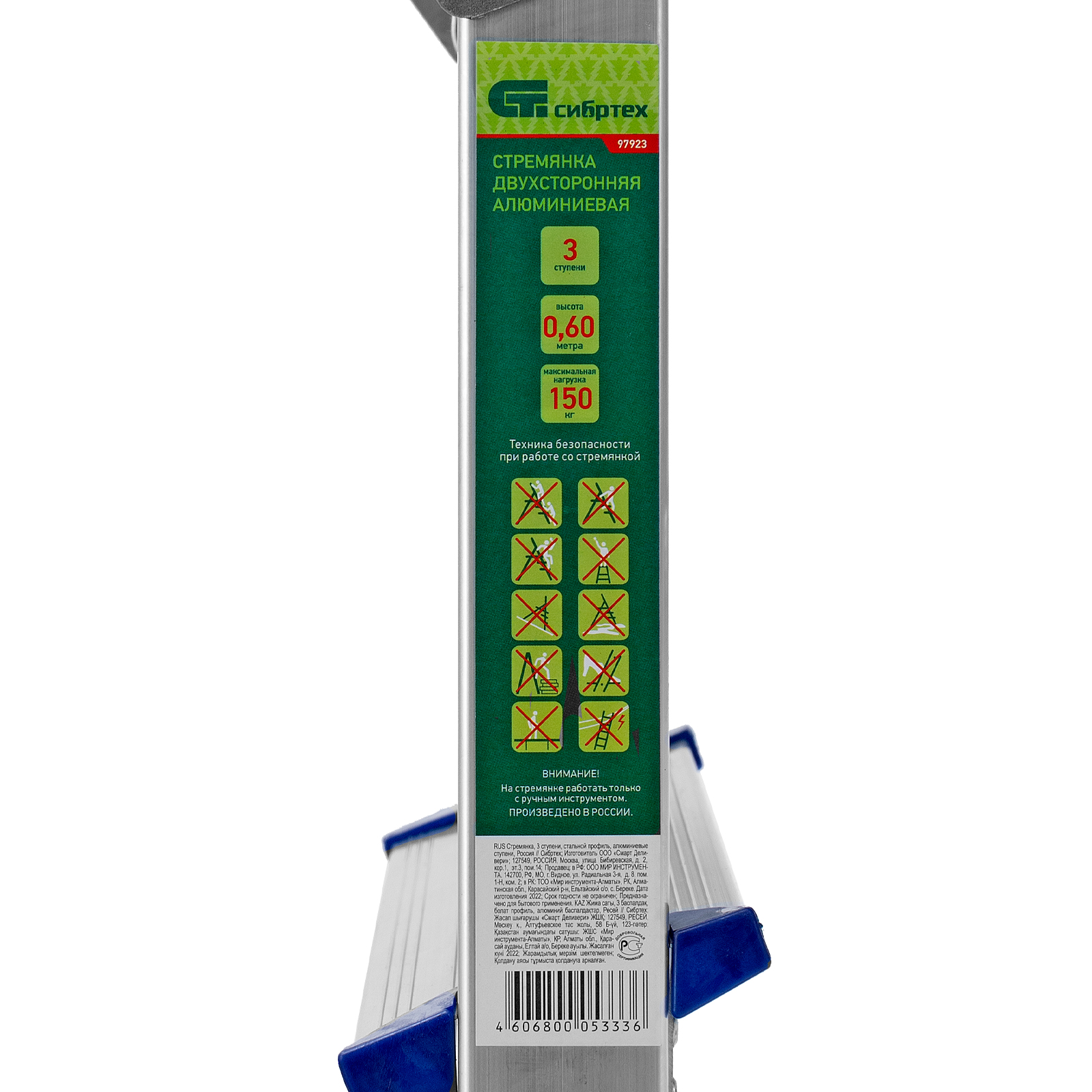 Стремянка двусторонняя 3 ступени, алюминиевая, Сибртех в Воронеже