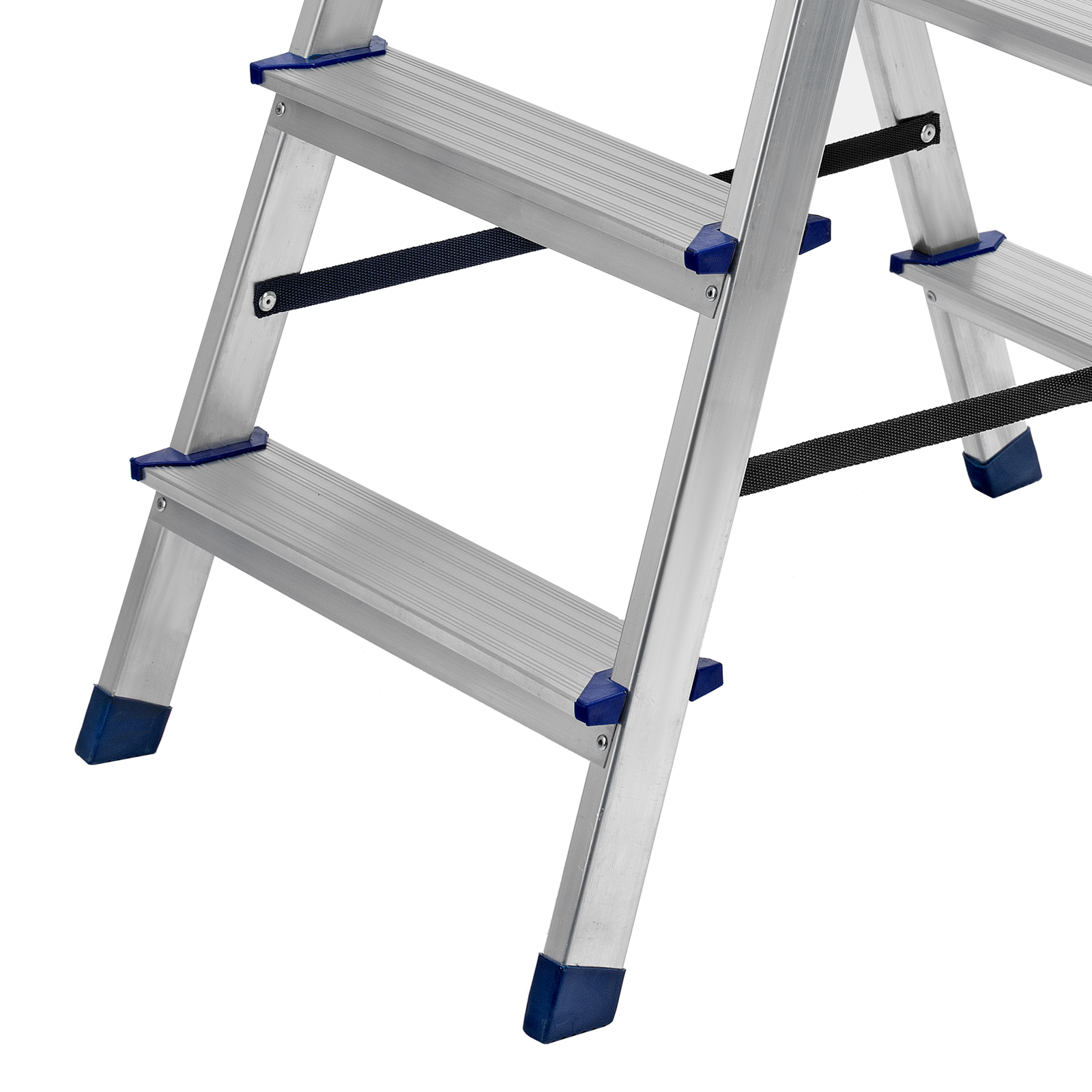 - Продуманная конструкция — нейлоновые страховочные стяжки повышают надежность фиксации стремянки в рабочем положении.