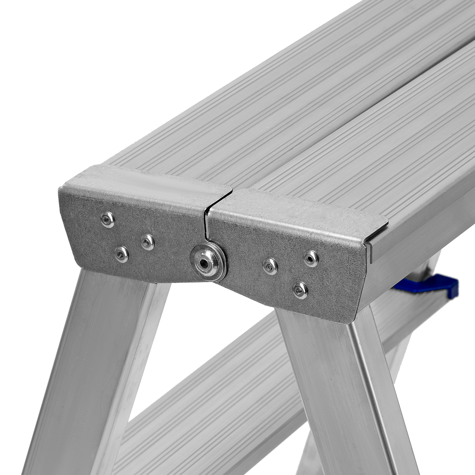 - Долговечность — стремянка выполнена из легкого, но прочного алюминия, устойчивого к коррозии.