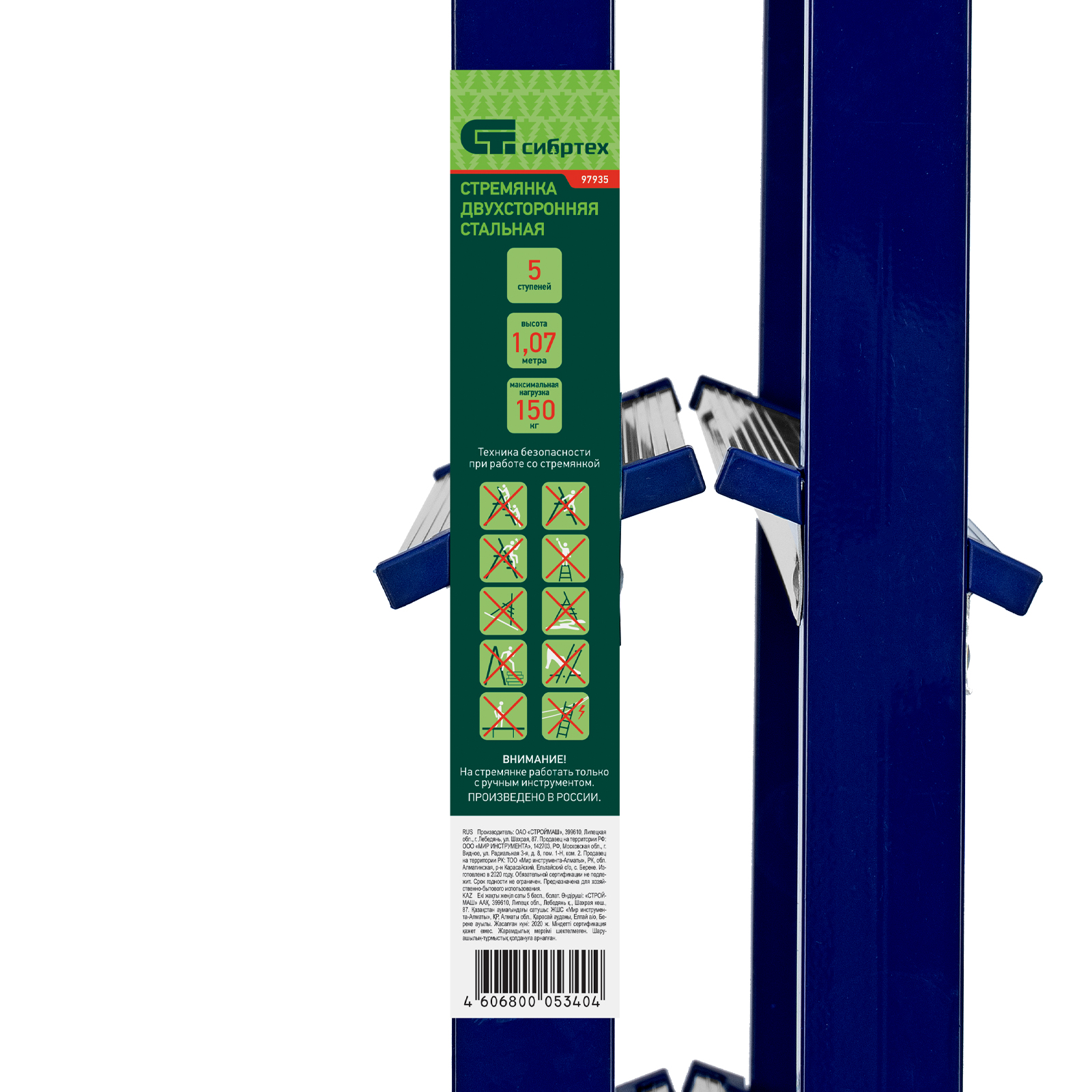 Стремянка двусторонняя 5 ступеней, стальная, Сибртех в Воронеже