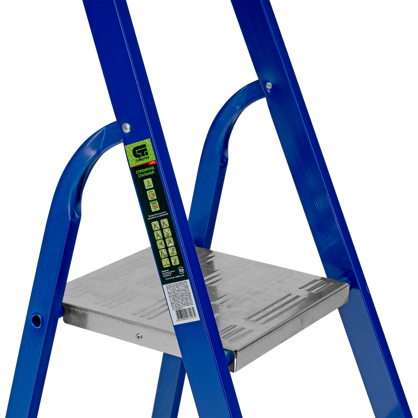 Стремянка, 3 ступени, стальной профиль, алюминиевые ступени Сибртех в Воронеже