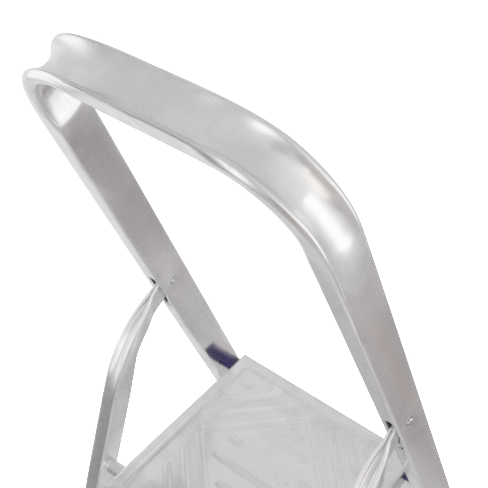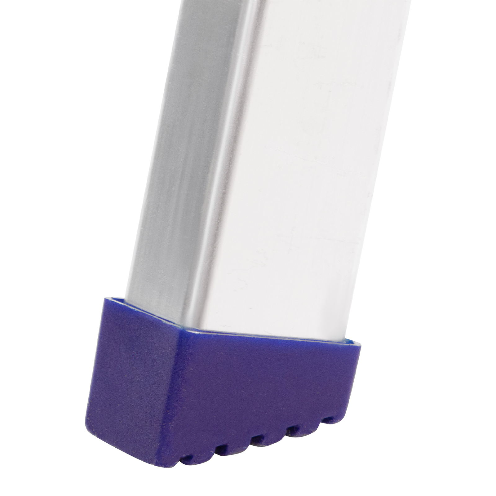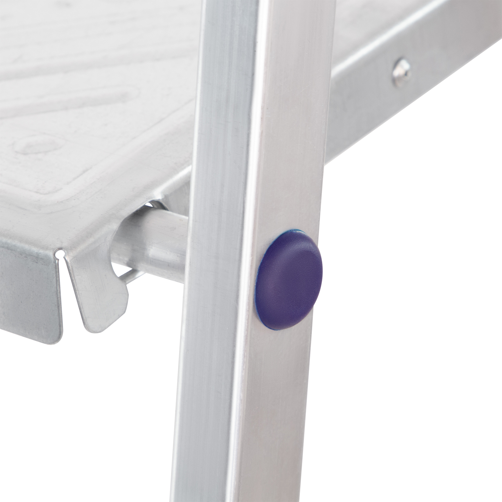 - Надежность — рама из прямоугольного алюминиевого профиля выдерживает нагрузку до 150 кг, широкие ступени закреплены заклепками, страховочные стяжки повышают прочность конструкции.