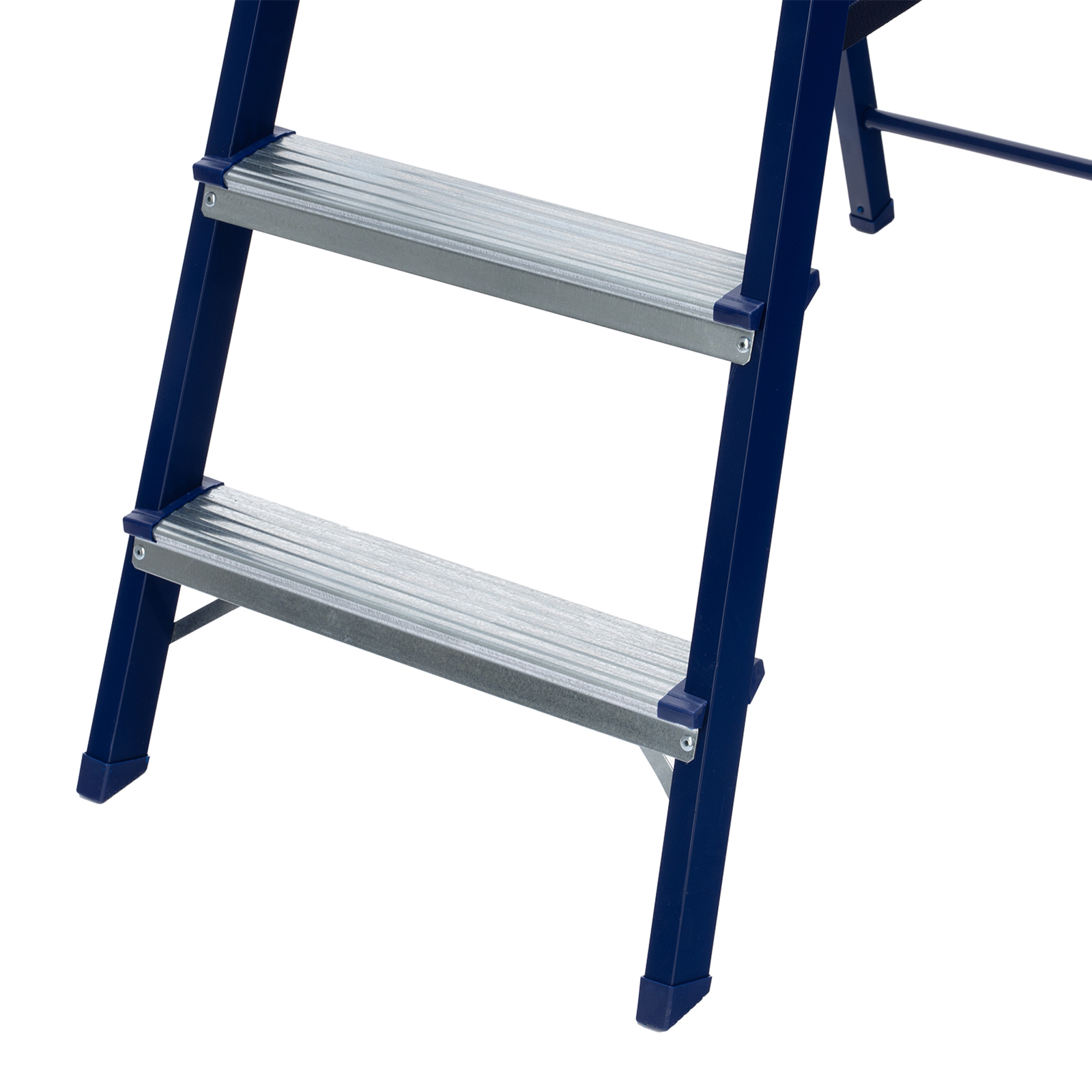 - Повышенная прочность — рама и ступеньки изготовлены из стали и выдерживают нагрузку до 150 кг.