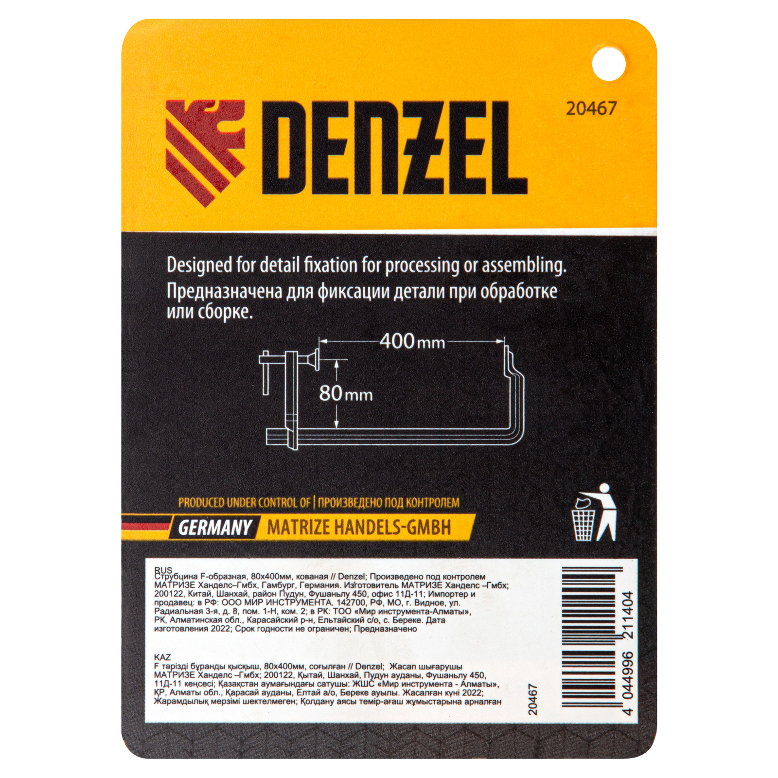 Струбцина F-образная, 80x400мм, кованая Denzel в Воронеже
