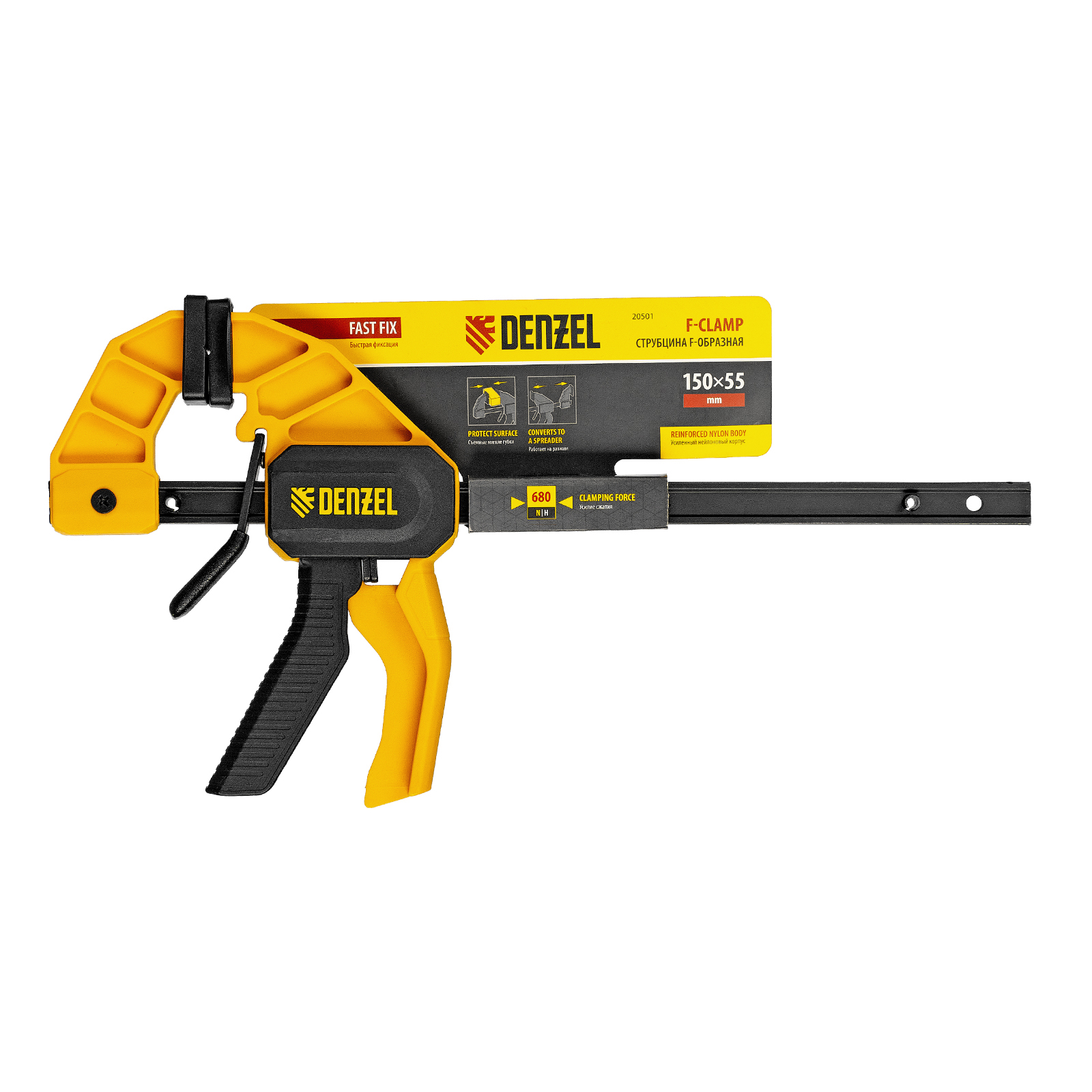 Струбцина F-образная, быстрозажимная, 150 х 55 мм, усиленный нейлоновый корпус Denzel в Воронеже