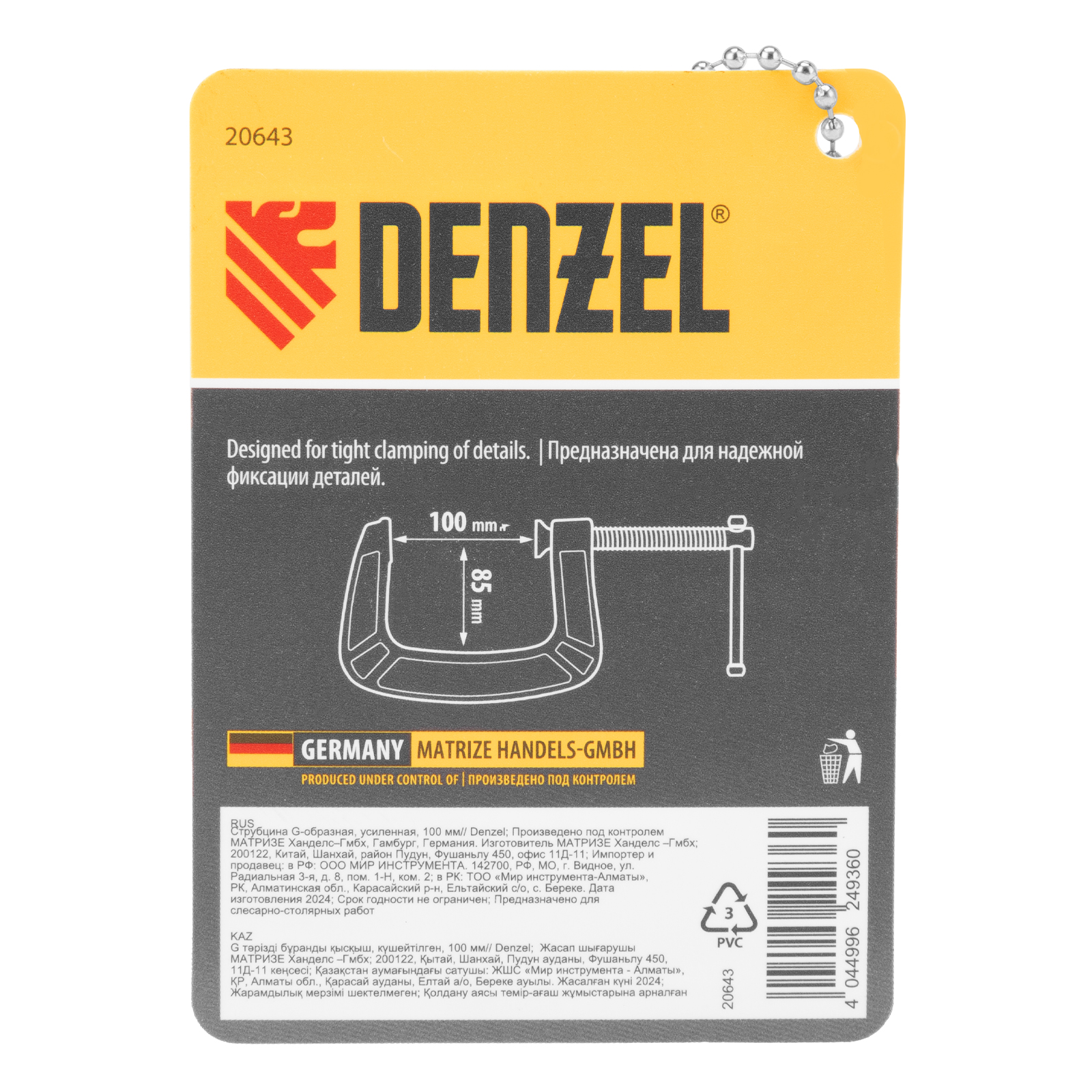 Струбцина G-образная, усиленная, 100 мм Denzel в Воронеже