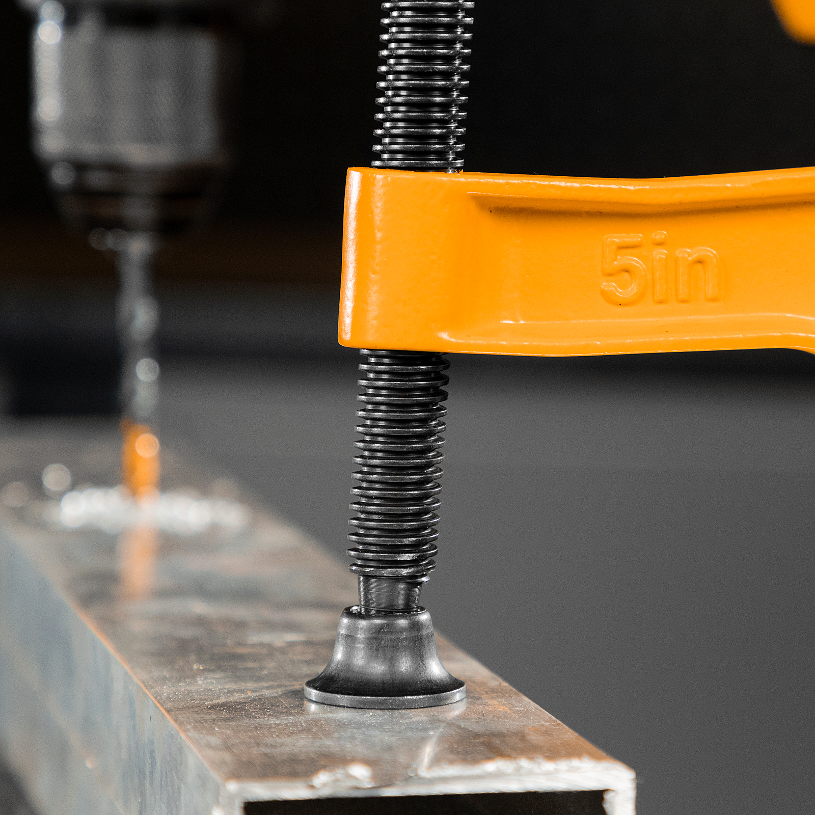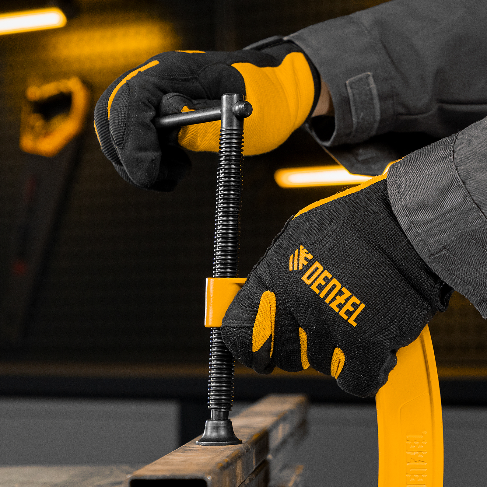 G-образная струбцина Denzel 20644 с максимальной шириной зажима 125 мм используется для фиксации заготовок или закрепления их на верстаке, станке или между собой. Позволяет склеивать детали, а также сверлить их, шлифовать, опиливать и проводить другие работы. Может использоваться во время выполнения сварочных работ. Винт с трапециевидной резьбой обеспечивает надежную фиксацию предметов. Струбцина применяется в слесарном и столярном деле, будет полезна также домашнем хозяйстве.