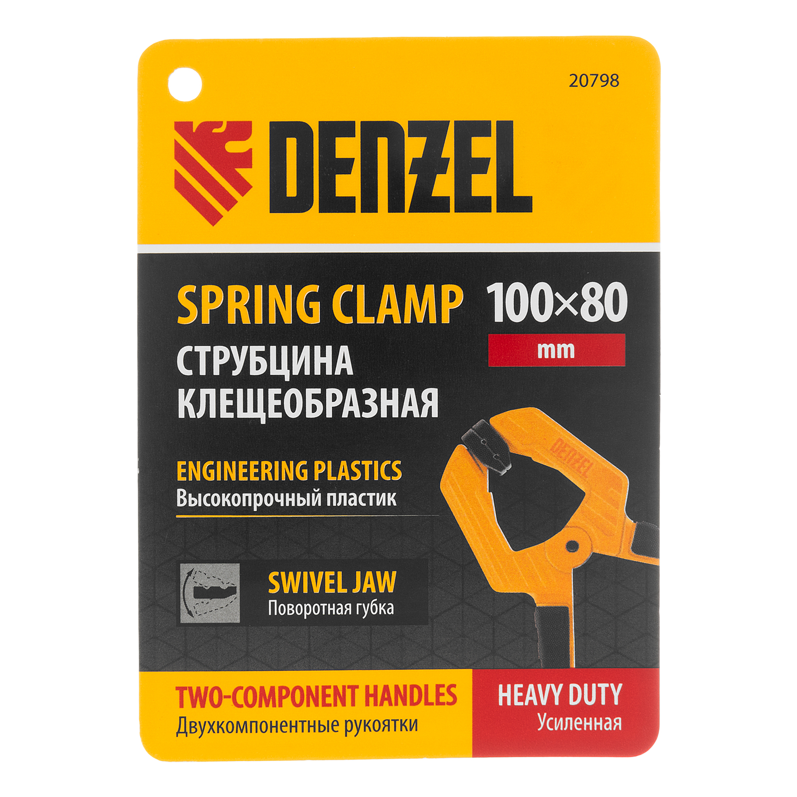 Струбцина клещеобразная, усиленная 100 х 80 мм, двухкомпонентные рукоятки Denzel в Воронеже