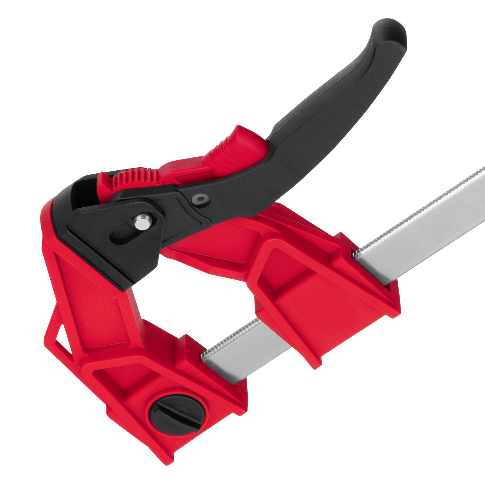 - Дополнительные возможности — съемную неподвижную губку можно перевернуть на рейке, превратив струбцину в распорный инструмент.