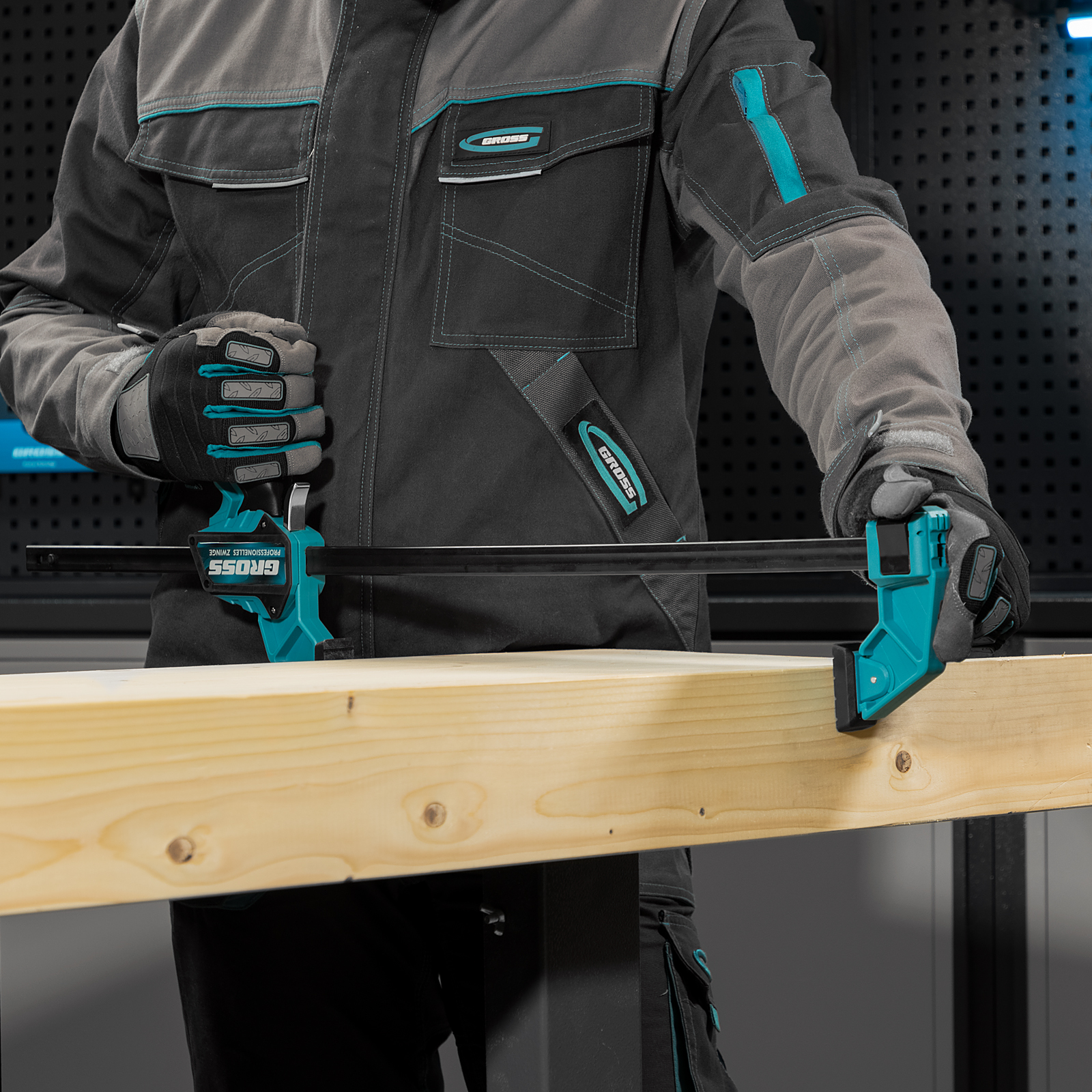 - Многофункциональность — опорную губку можно переставить на другой конец рейки, чтобы использовать струбцину как распорный инструмент.
