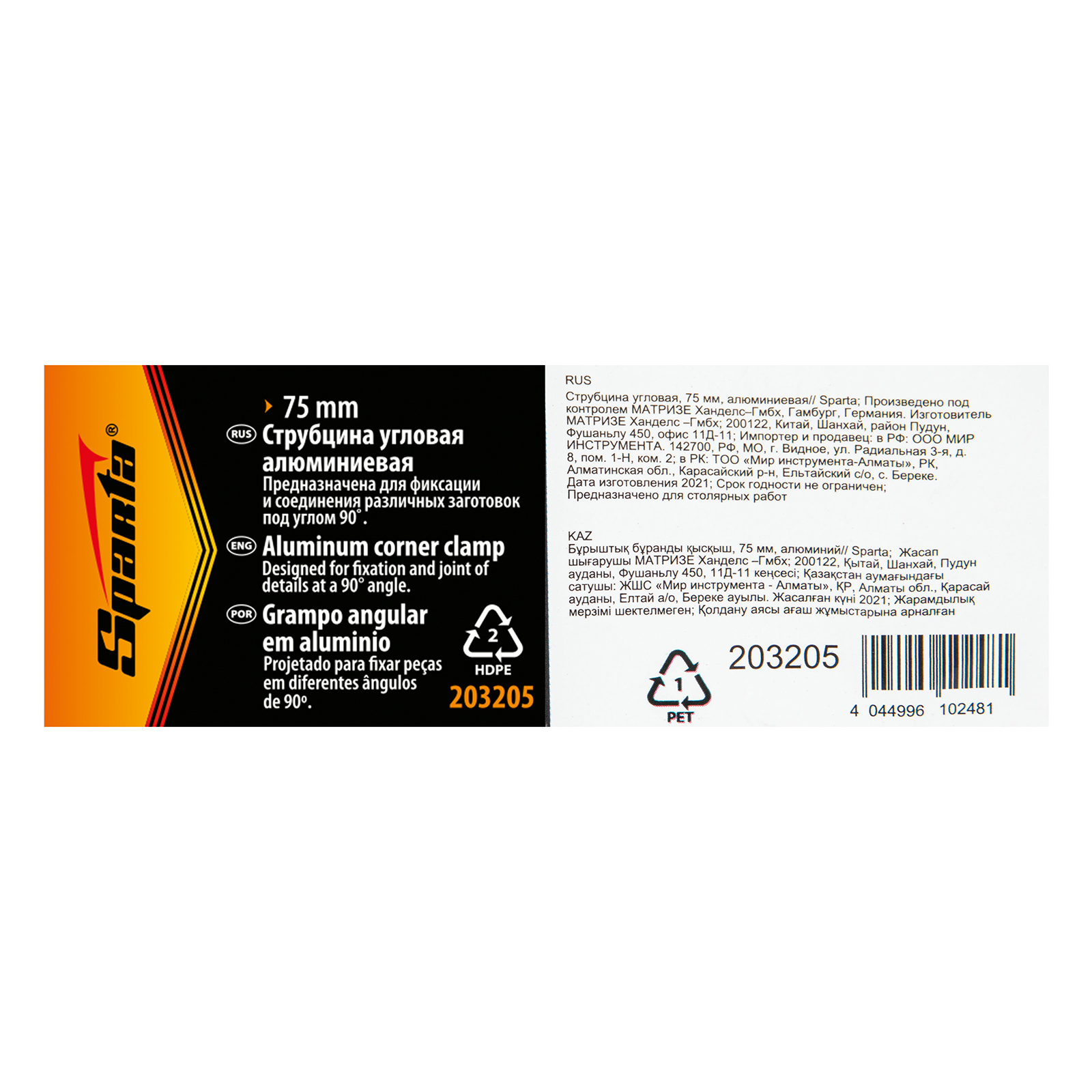 Струбцина угловая, 75 мм, алюминиевая Sparta в Воронеже