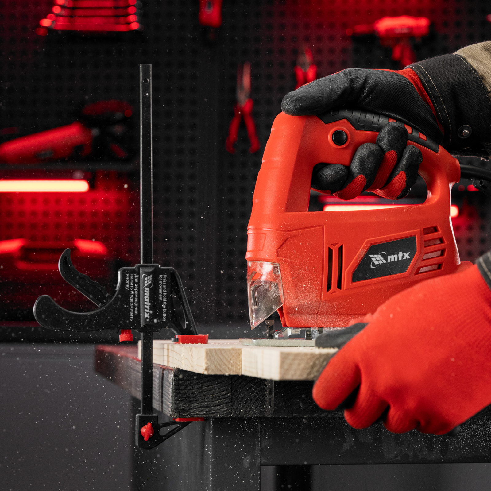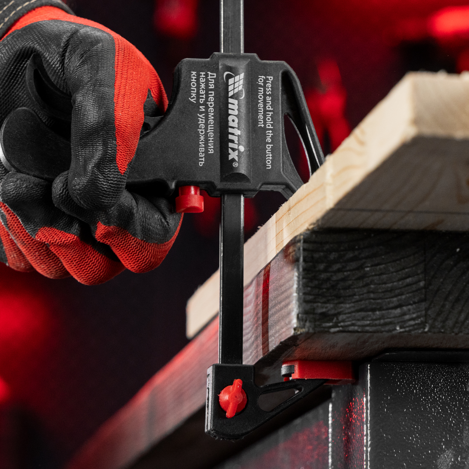Универсальная F-образная быстрозажимная струбцина Matrix 20562 размером 200 х 315 х 45 мм, в пластиковом корпусе, используется в столярном деле. Позволяет быстро фиксировать заготовки с целью их соединения или обработки — склеивания, сверления, шлифовки, пиления и других видов работ. Подвижная губка перемещается вдоль штанги при помощи пластинчатого механизма, а фиксатор препятствует разжиманию струбцины. Массивная конструкция обеспечивает надежность инструмента.