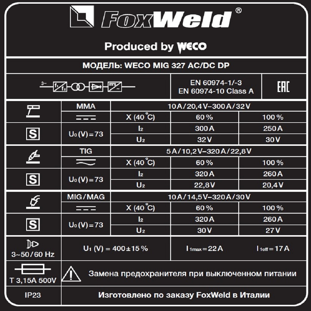 • Сварочный полуавтомат WECO MIG 327 AC/DC DP купить в Москве с доставкой по всей России | ProtosMarket.ru