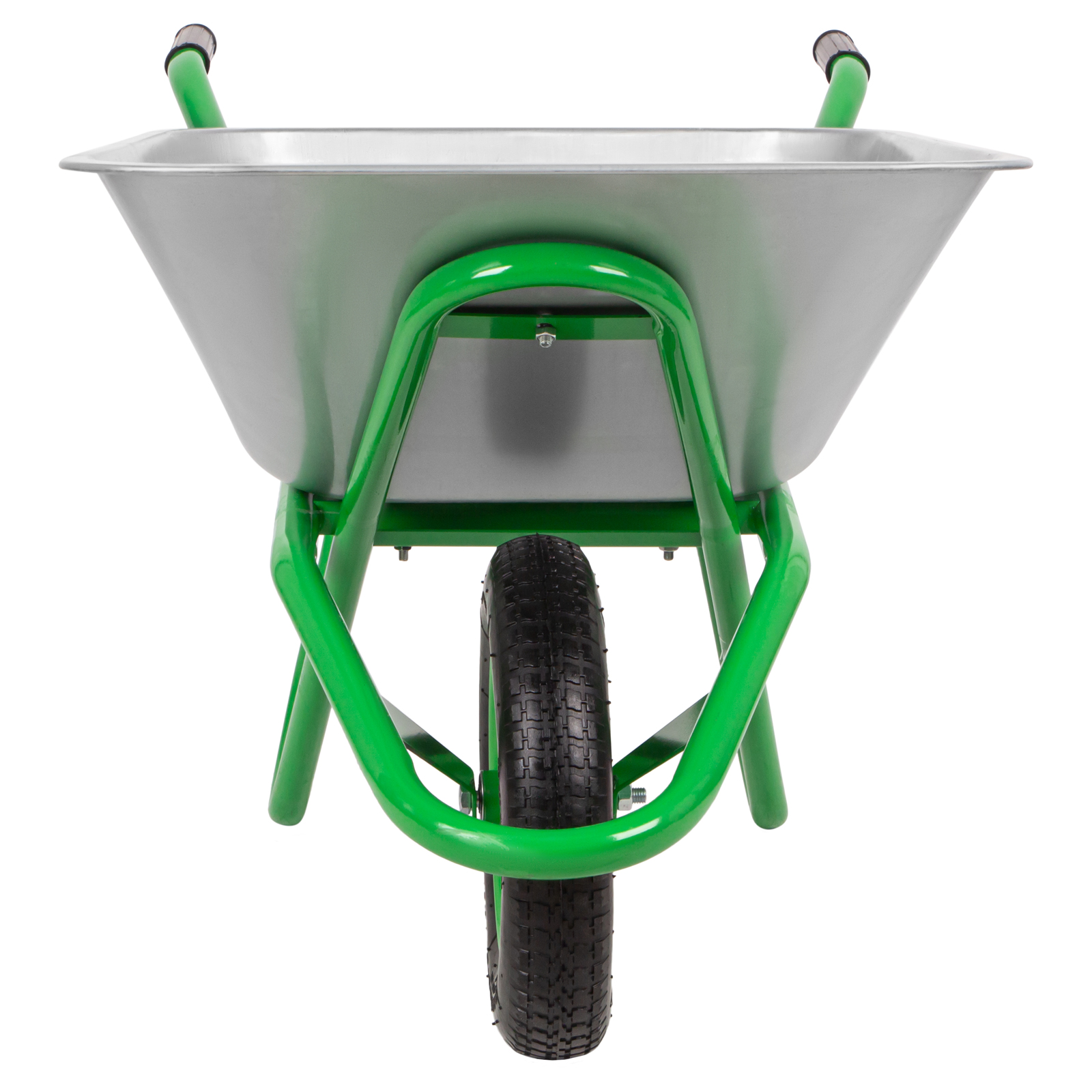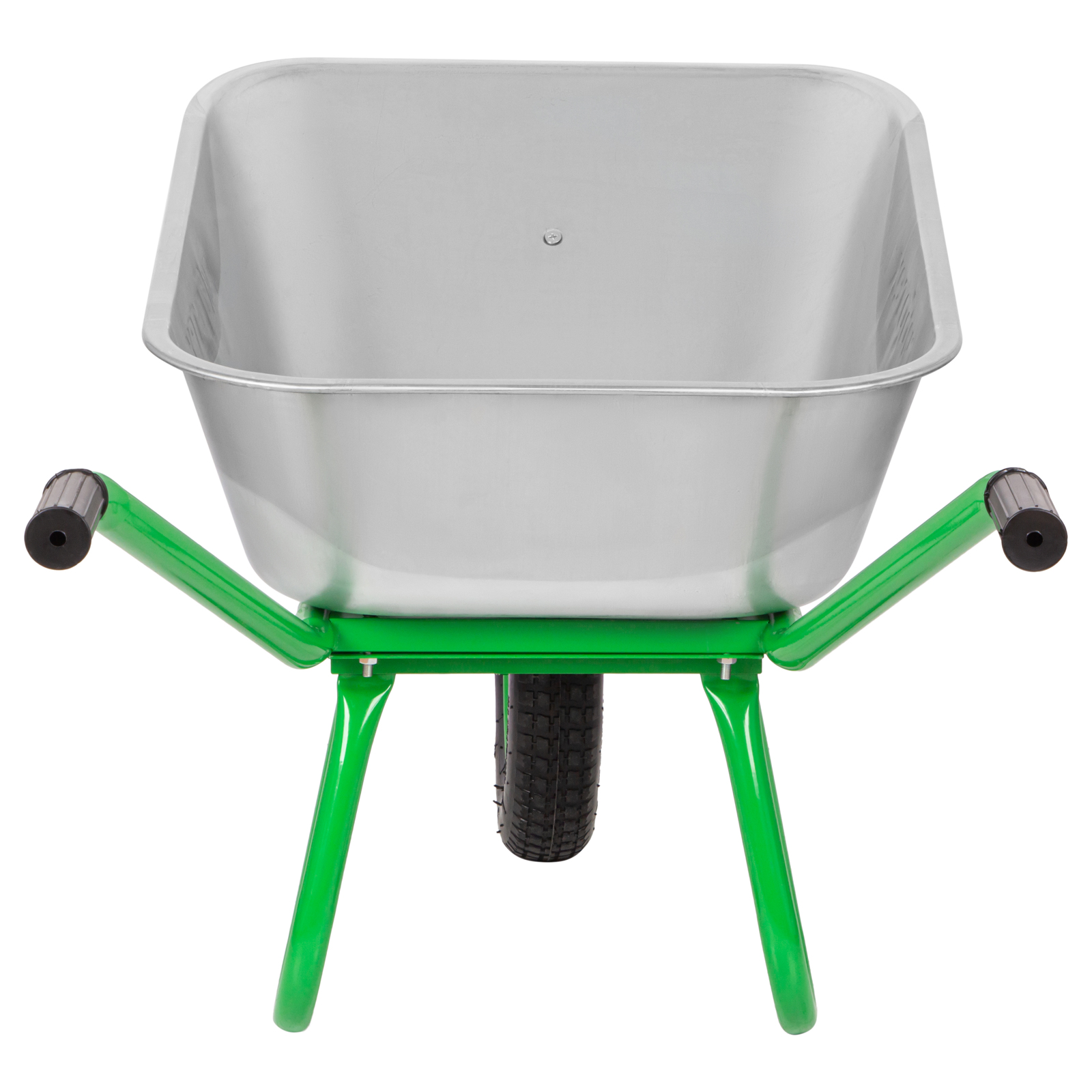 - Высокая грузоподъемность — переднюю часть кузова поддерживает дополнительная опора, поэтому тачка выдерживает вес до 170 кг.