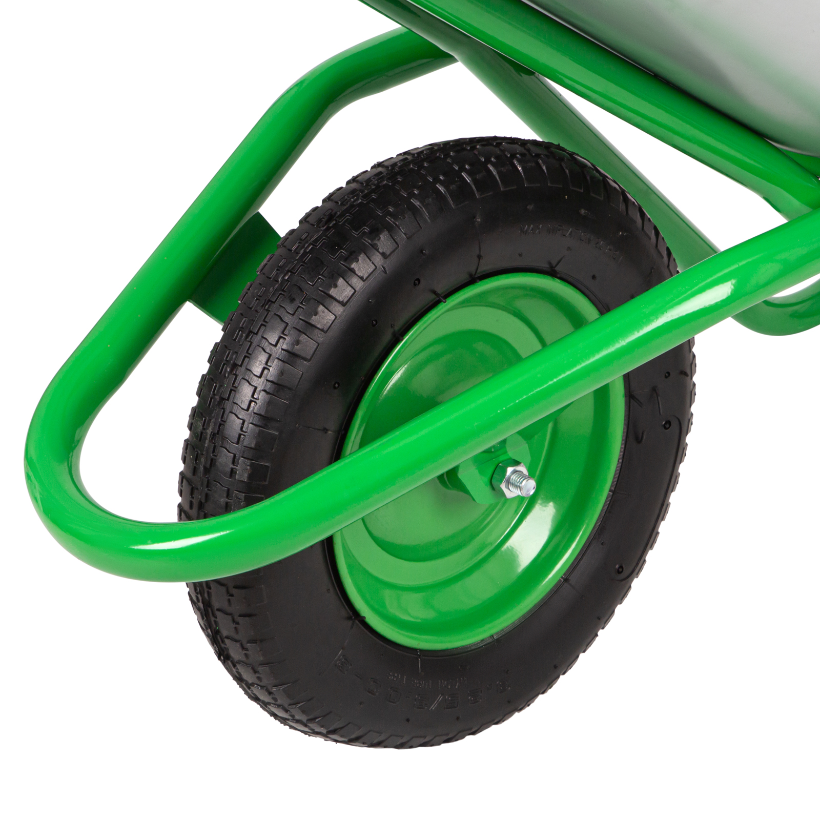 - Хорошая проходимость — 2 шарикоподшипника облегчают вращение колеса, поэтому тачку легко перемещать по неровной поверхности.