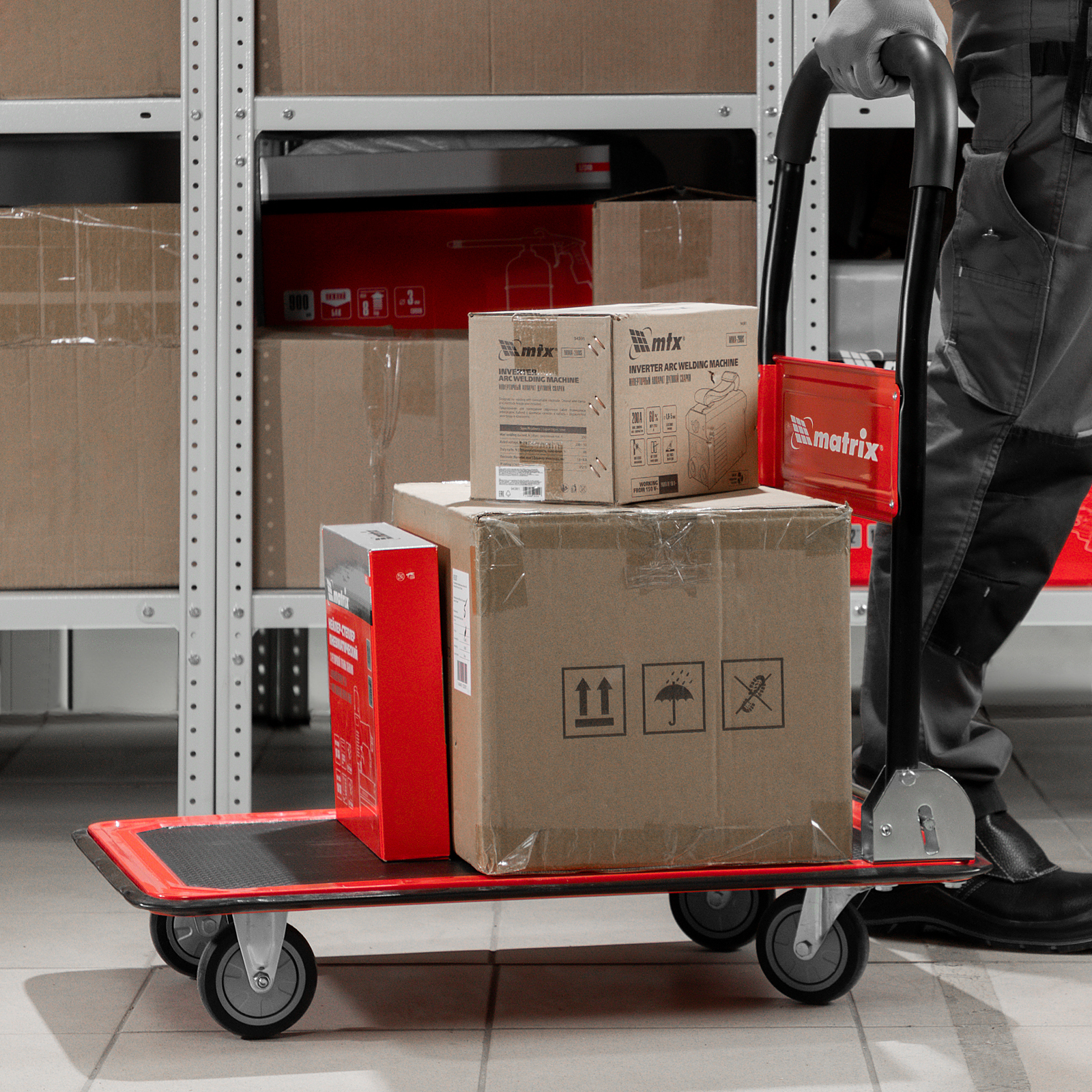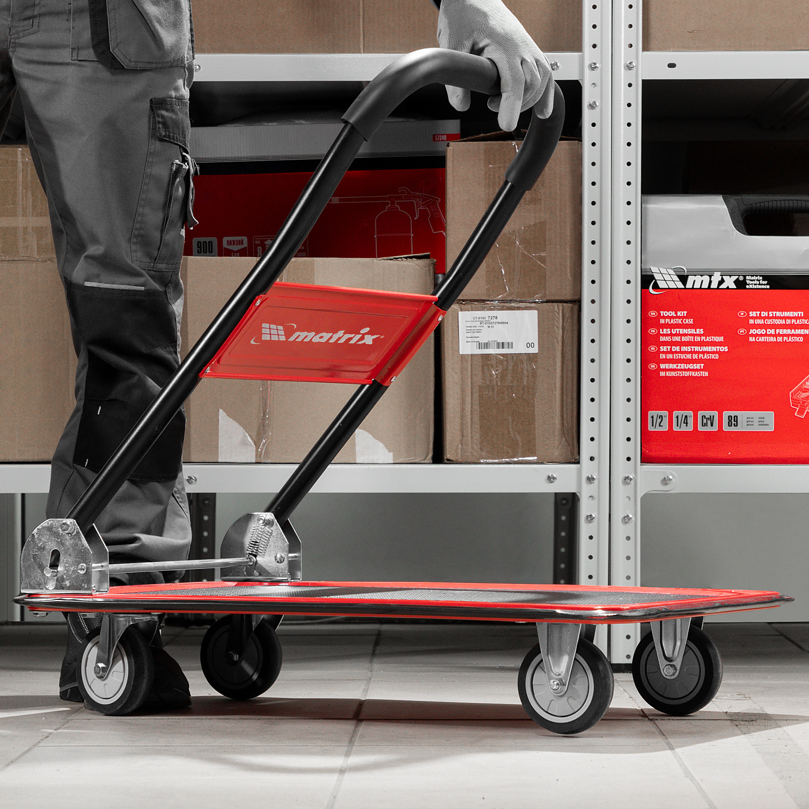 • Компактность — благодаря складной платформе тележка не занимает много места во время хранения и транспортировки.