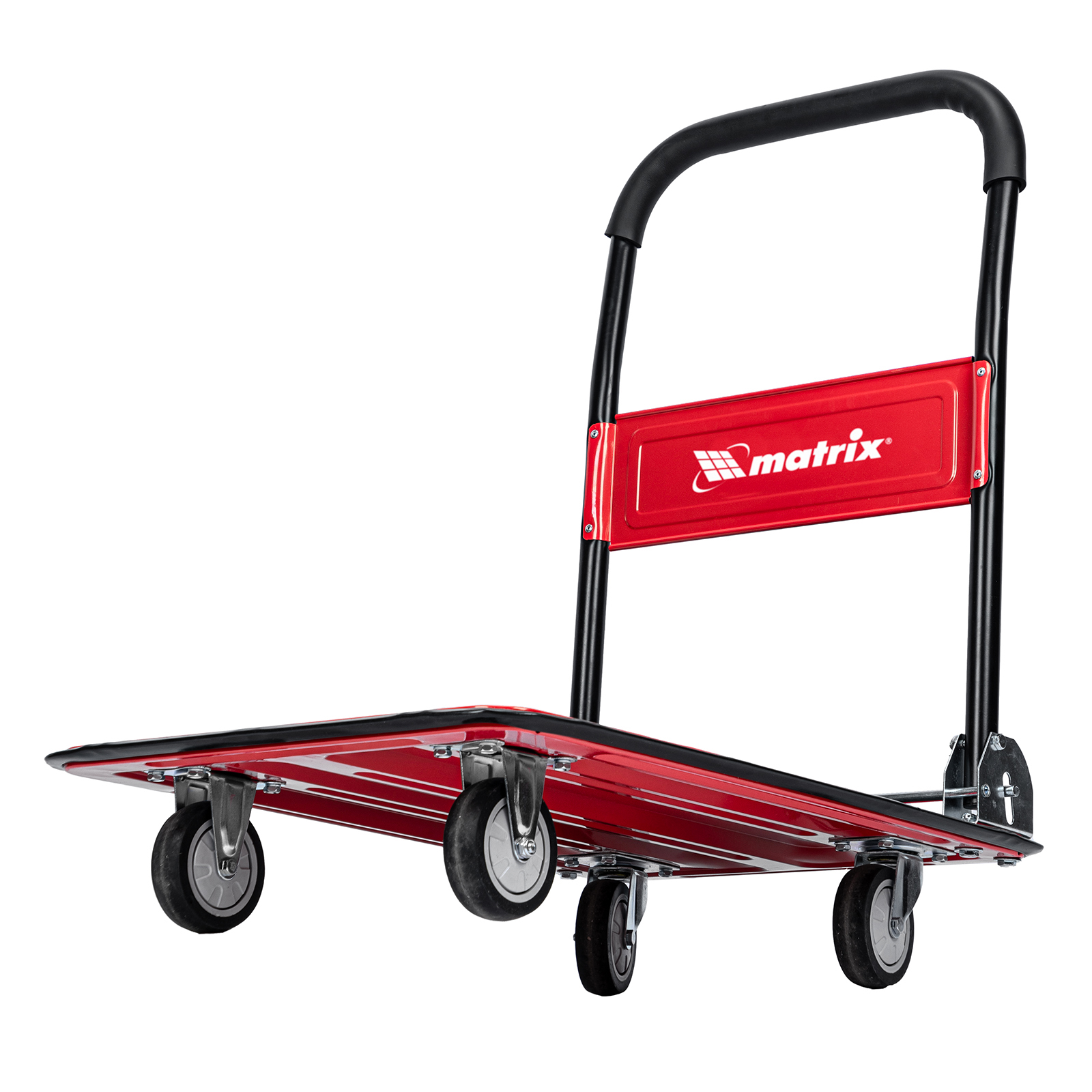 Хозяйственная тележка Matrix 98211 предназначена для перемещения грузов массой до 150 кг. На платформе размером 730 x 475 мм можно разместить даже крупногабаритные предметы.