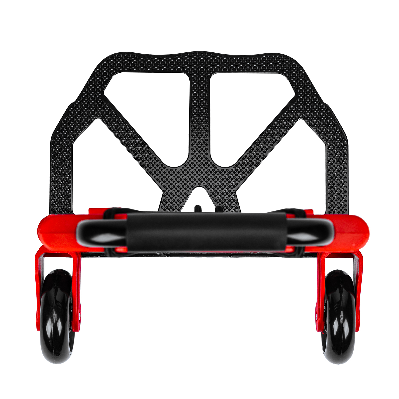 - Удобное хранение и транспортировка — платформа и колеса складываются, поэтому тележка не занимает много места.