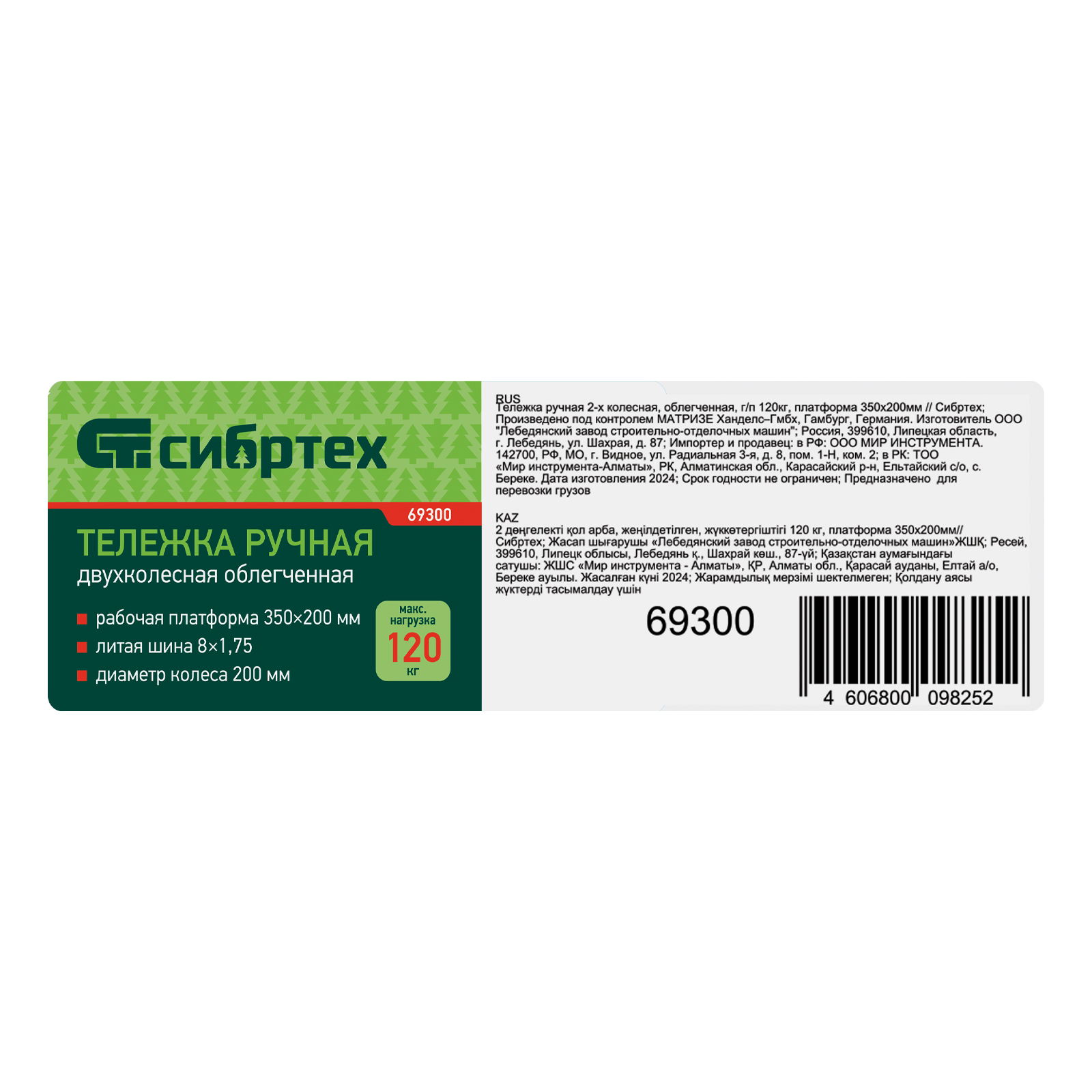 Тележка ручная 2-х колесная, облегченная, г/п 120кг, платформа 350х200мм Сибртех в Воронеже