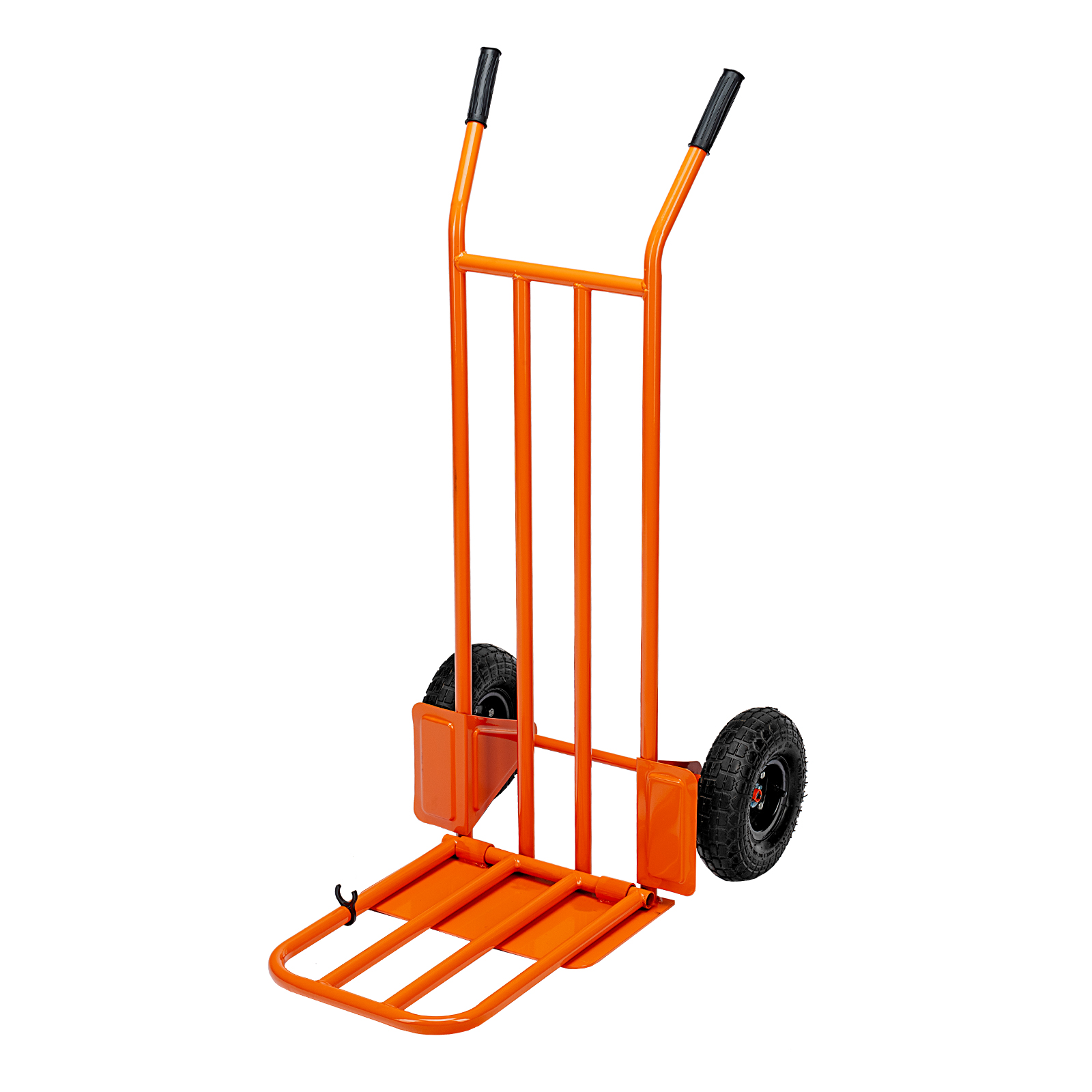 - Функциональность — откидная платформа позволяет размещать на тележке груз с увеличенными габаритами.