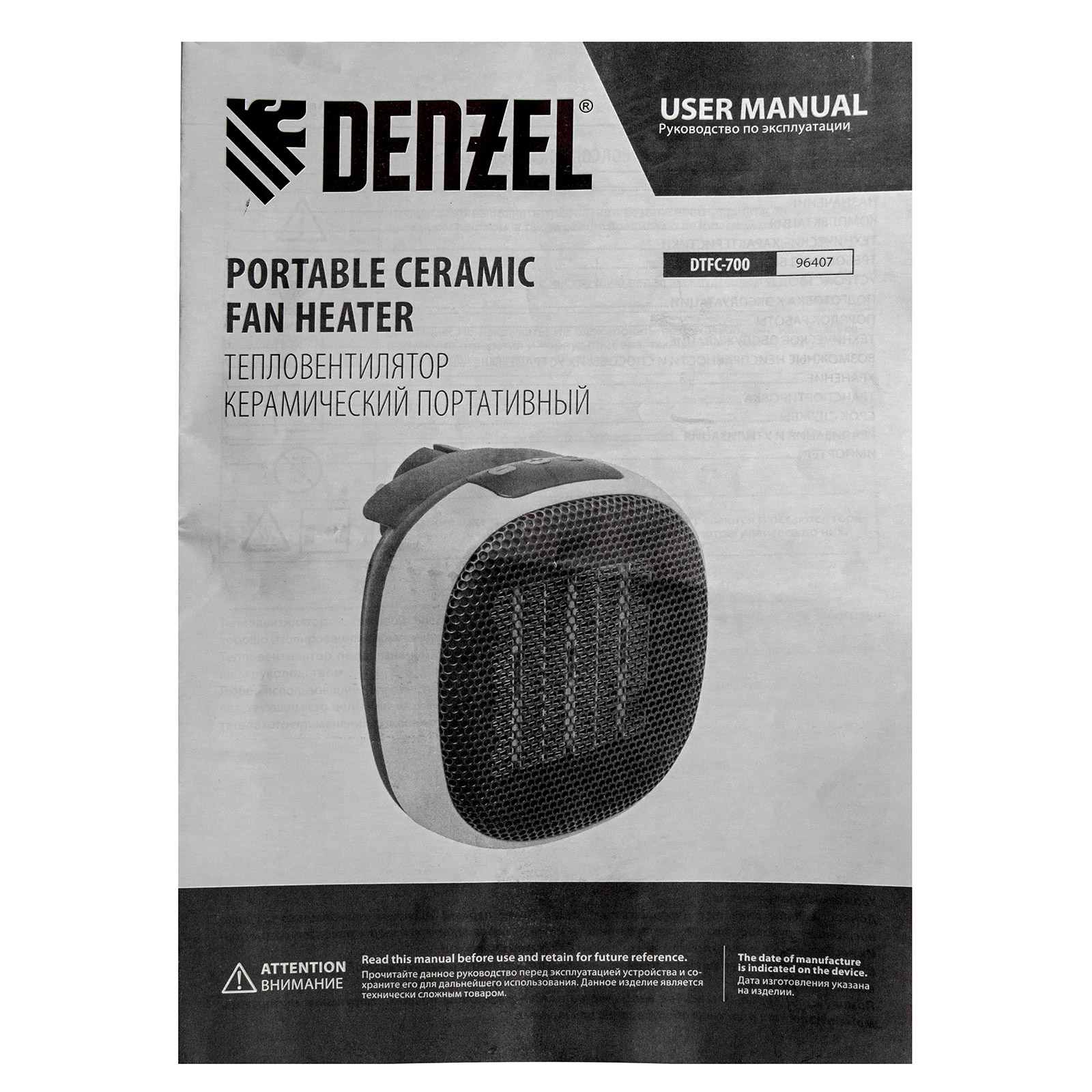 Тепловентилятор портативный керамический DTFC-700, 3 реж. вентилятор, нагрев 700 Вт Denzel в Воронеже