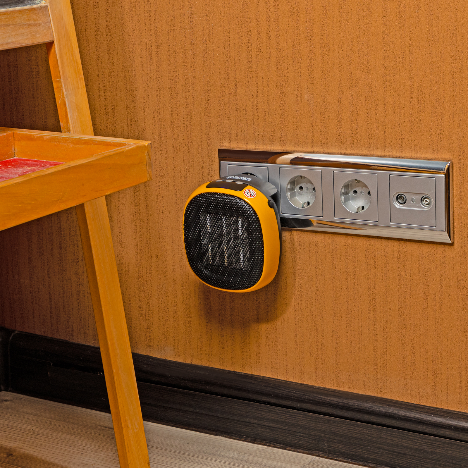 - Поворот на 90° — тепловентилятор оборудован поворотной вилкой для установки в оптимальном положении.