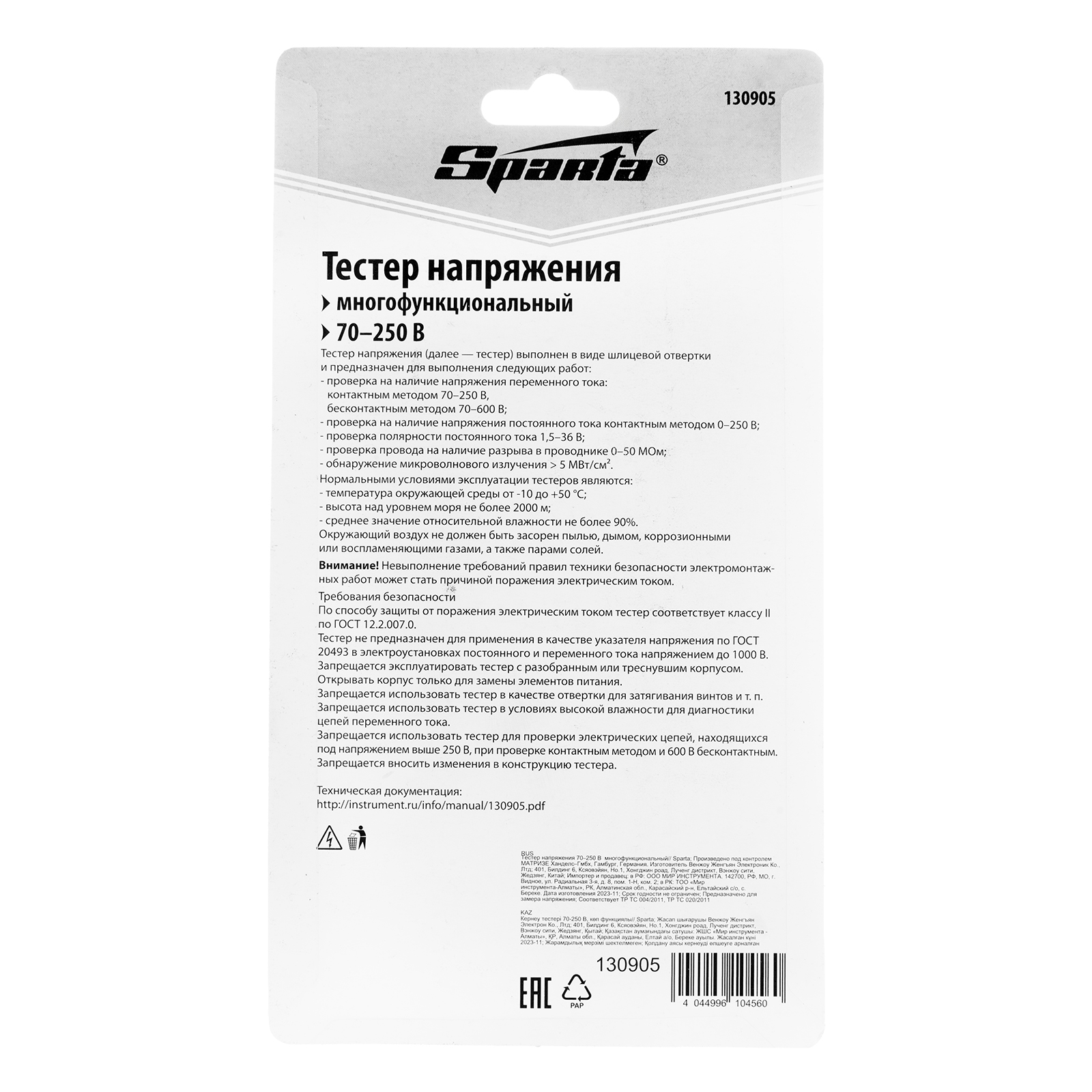 Тестер напряжения 70-250 В многофункциональный Sparta в Воронеже
