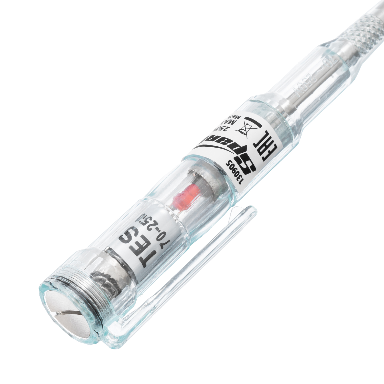 - Благодаря зажиму тестер напряжения удобно закреплять на поясе или с внешней стороны кармана.