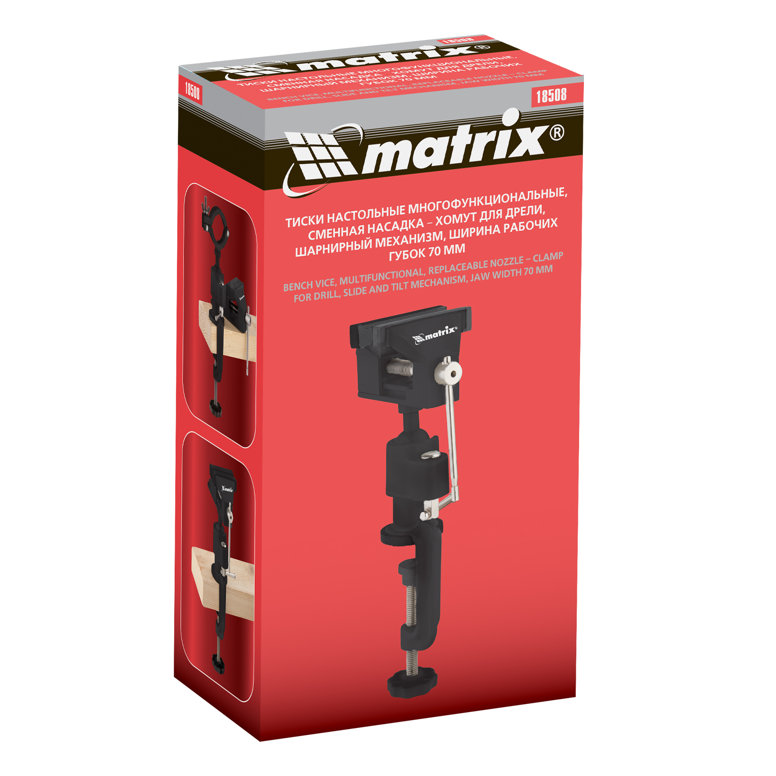 Тиски настольные, многофункциональные, сменная насадка, хомут для дрели, шарнирный механизм, 70 мм Matrix в Воронеже