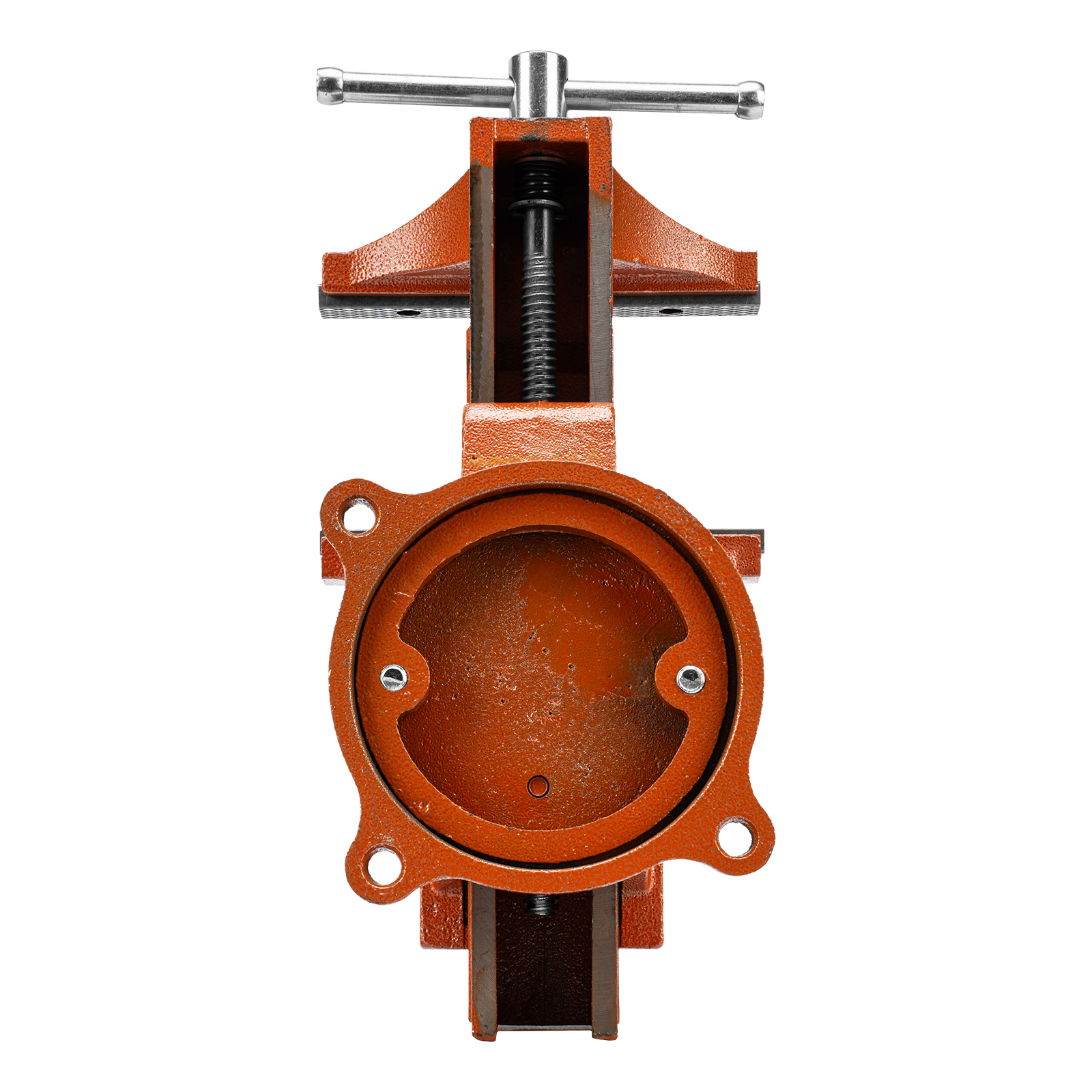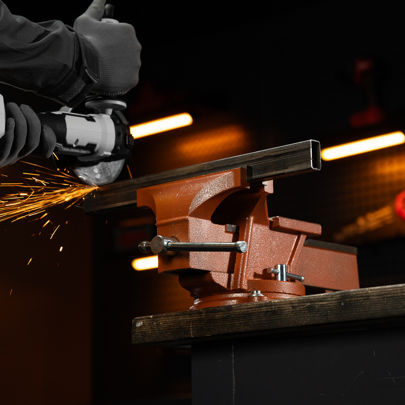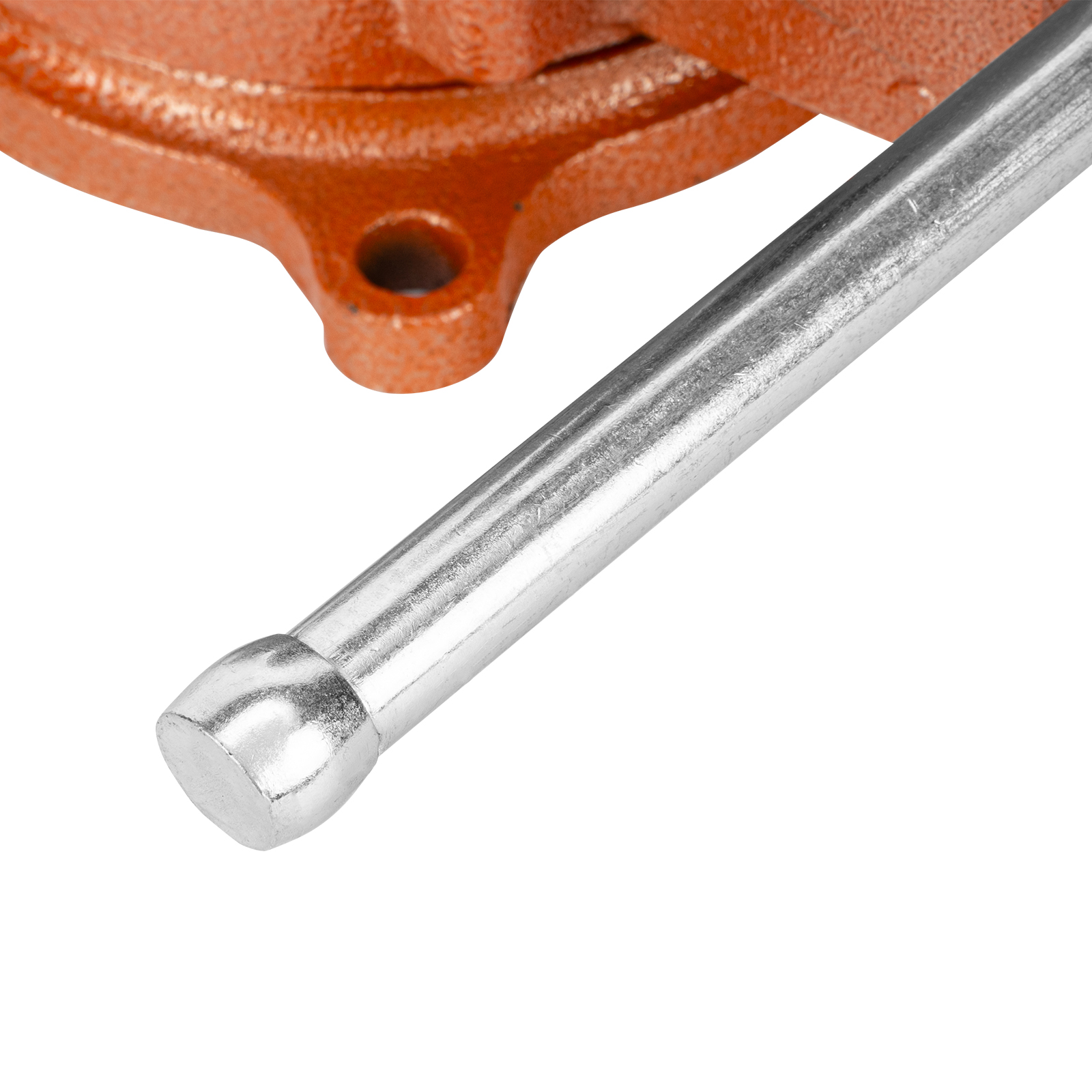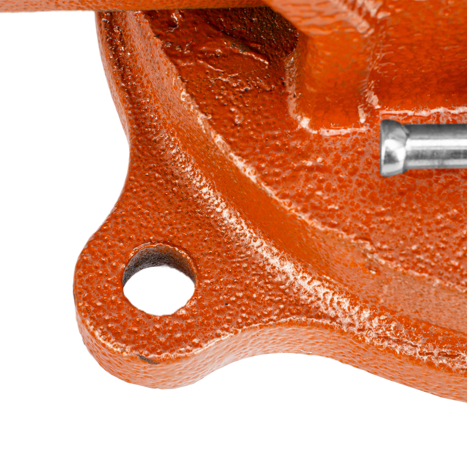 - Корпус тисков выполнен из чугуна, а губки — из стали, благодаря чему достигается высокая прочность инструмента.