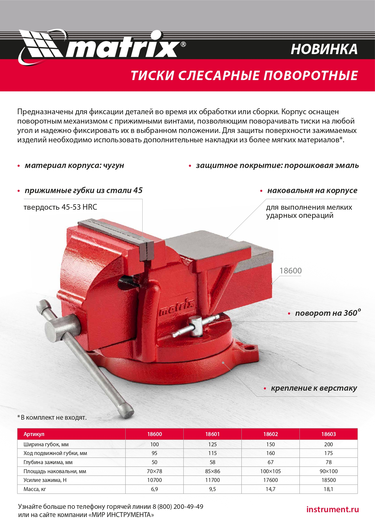 - Коррозионная стойкость — тиски покрыты защитной порошковой эмалью.