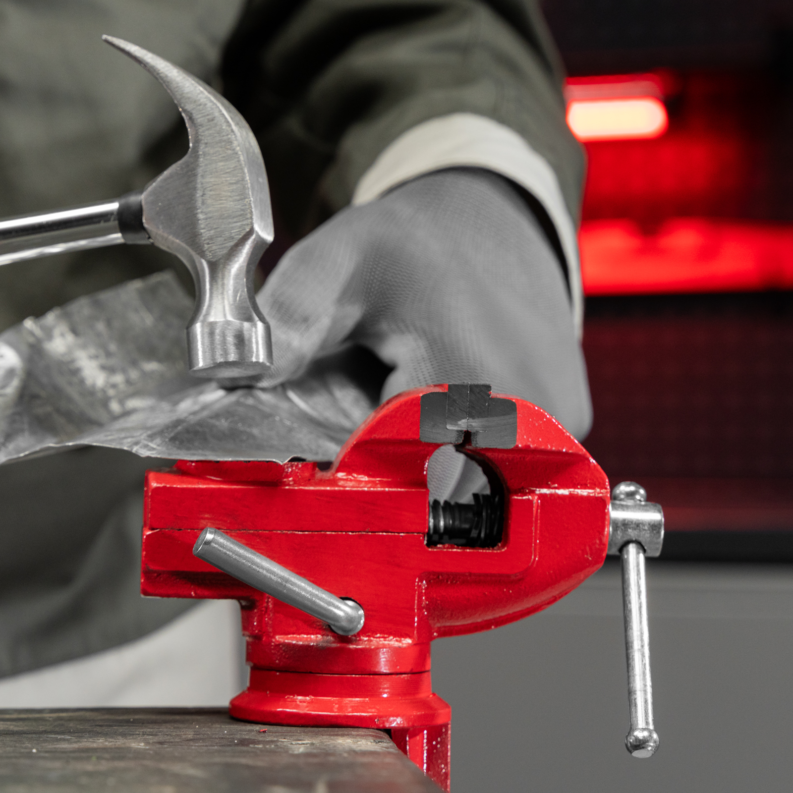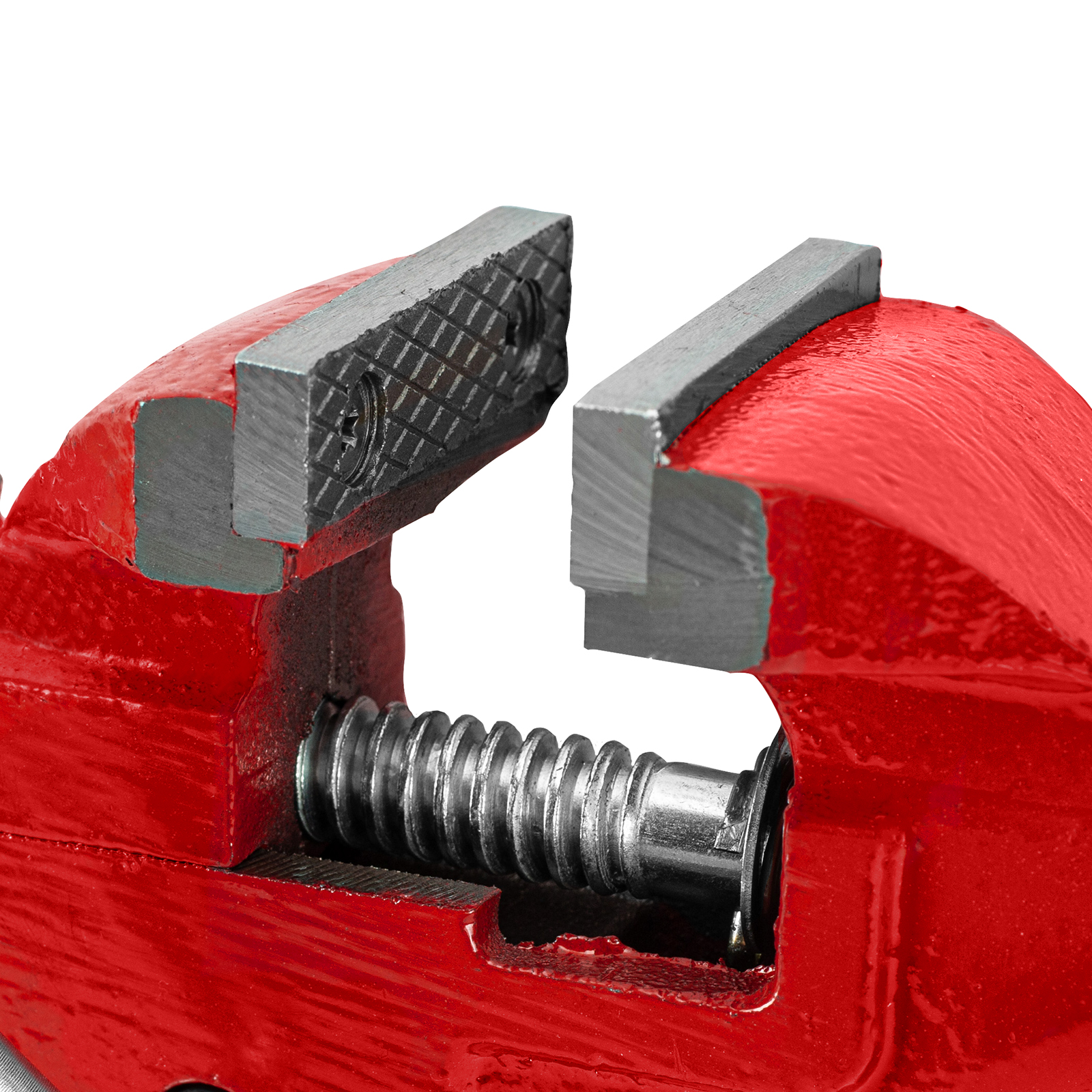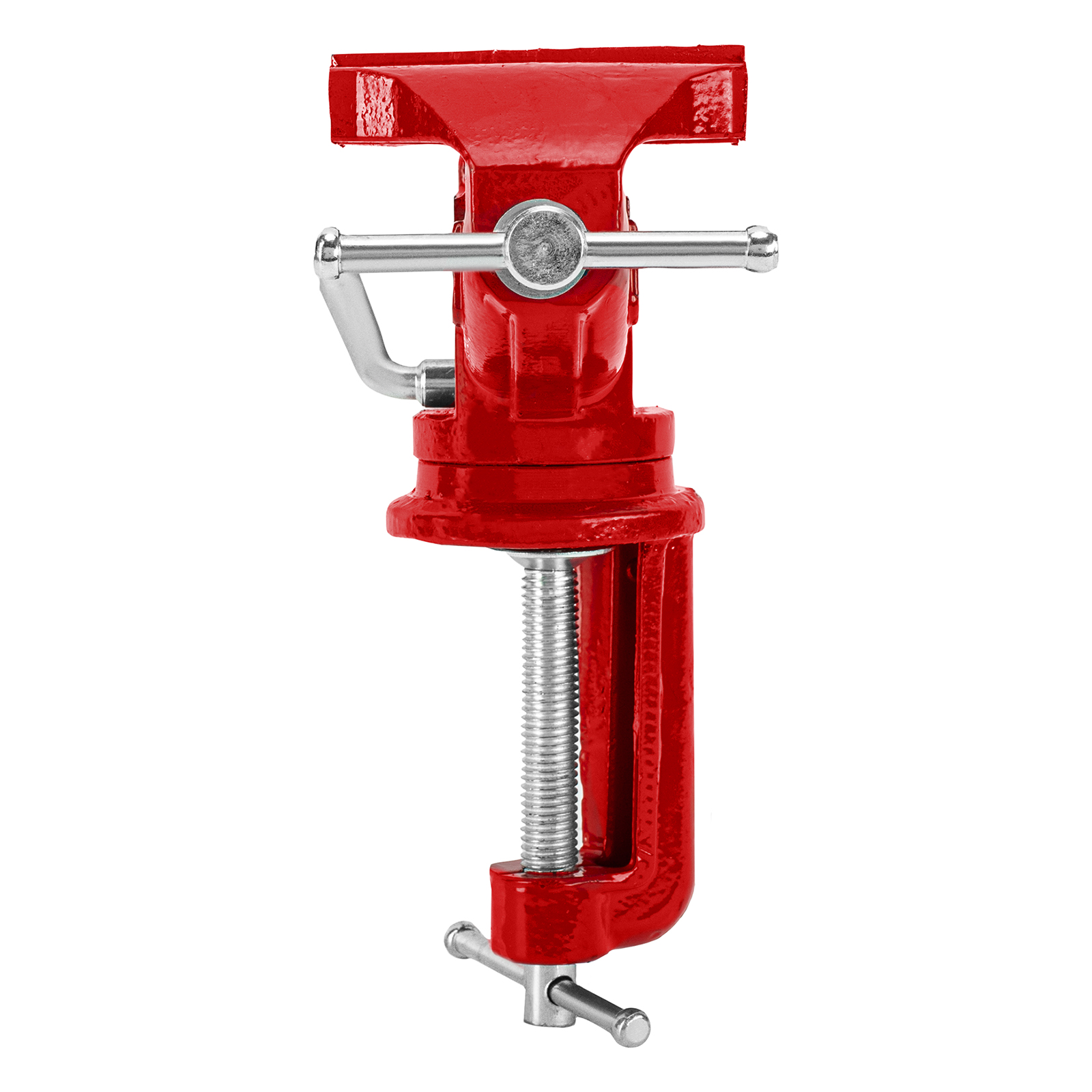 - Простая подготовка к работе — тиски надежно фиксируются на рабочем столе при помощи струбцины с винтовым зажимом.