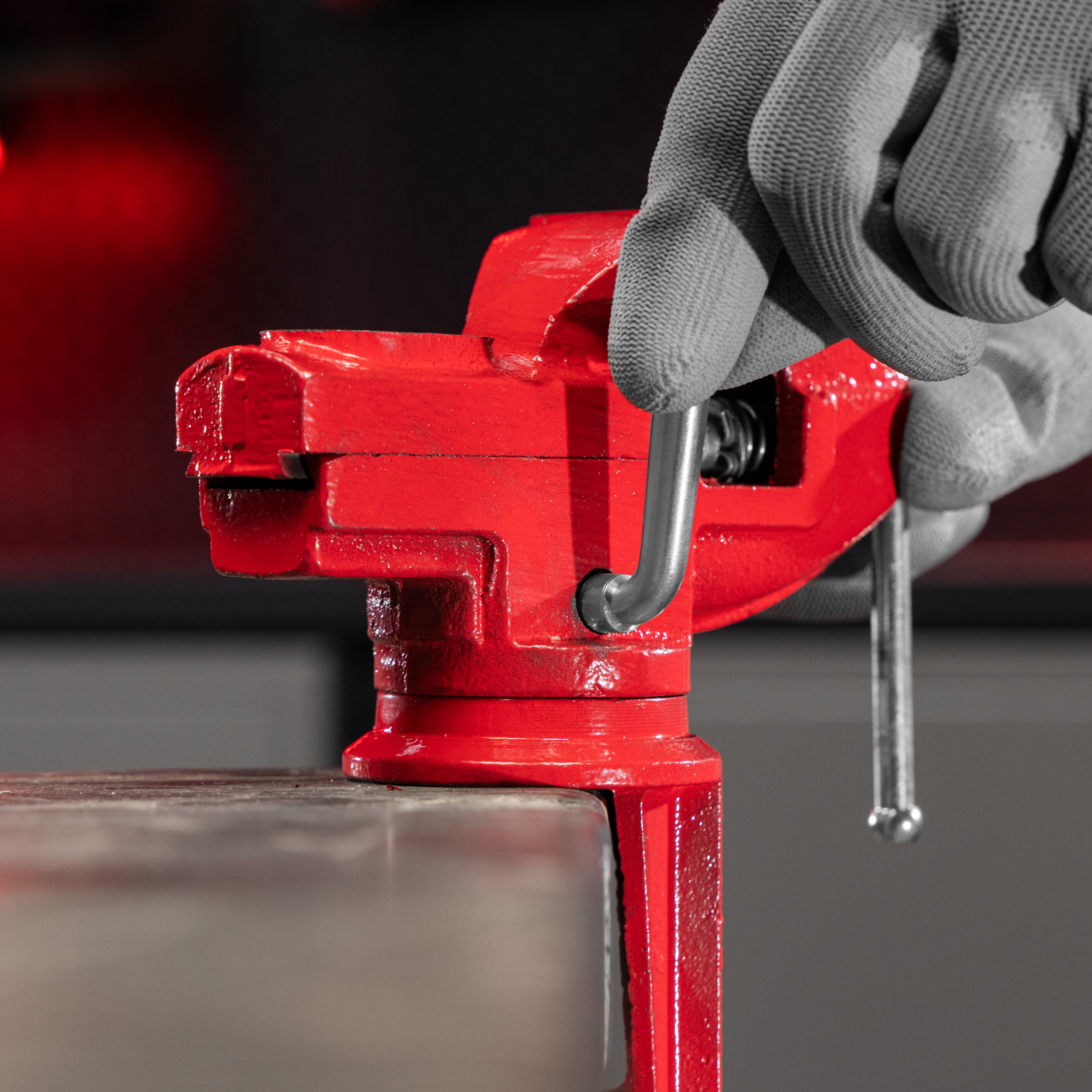 Настольные слесарные тиски MTX 18675 с поворотным механизмом и наковальней имеют ширину рабочих губок 50 мм и используются для фиксации заготовок. Удобны для обработки небольших деталей. Инструмент пригодится для проведения полупрофессиональных слесарных и столярных работ.