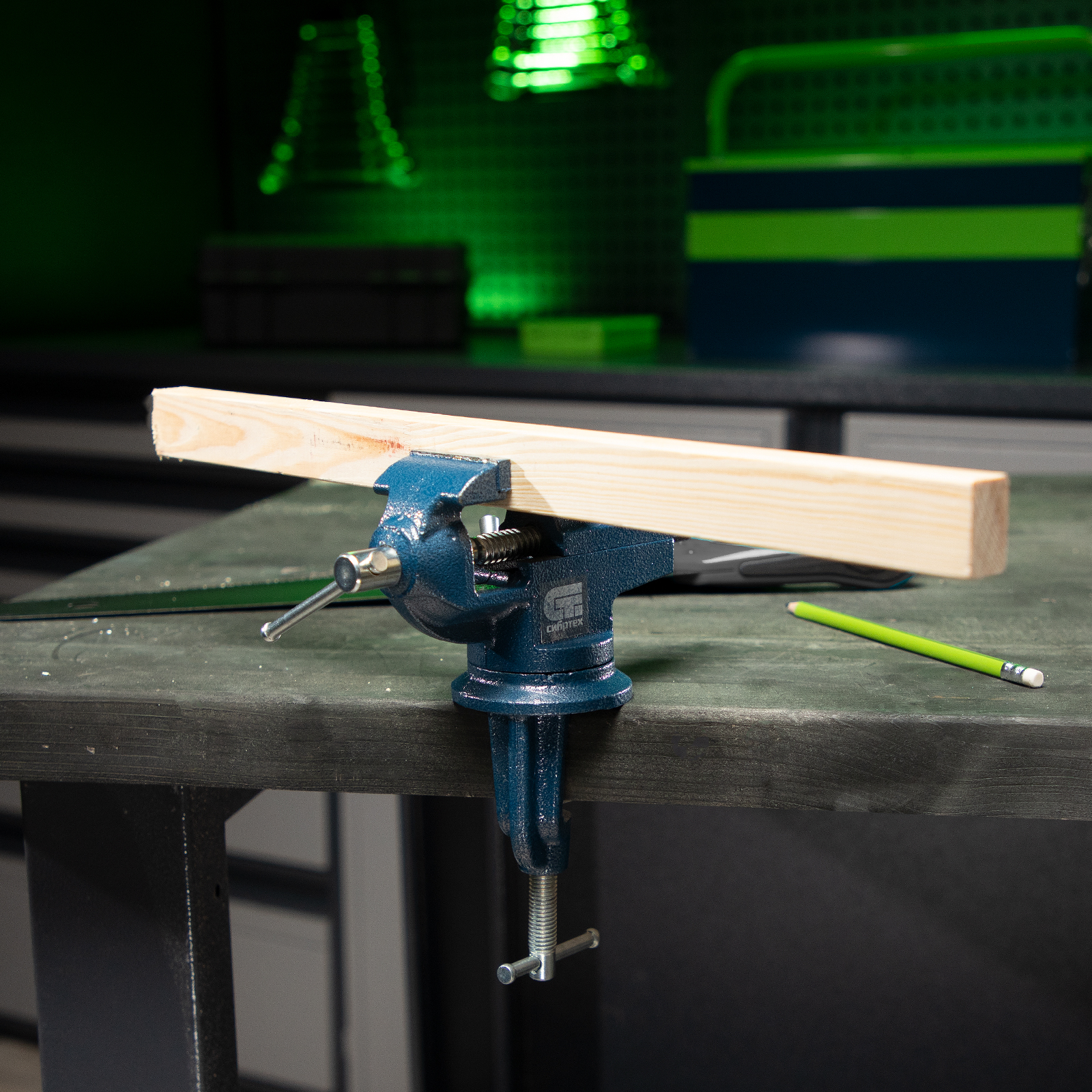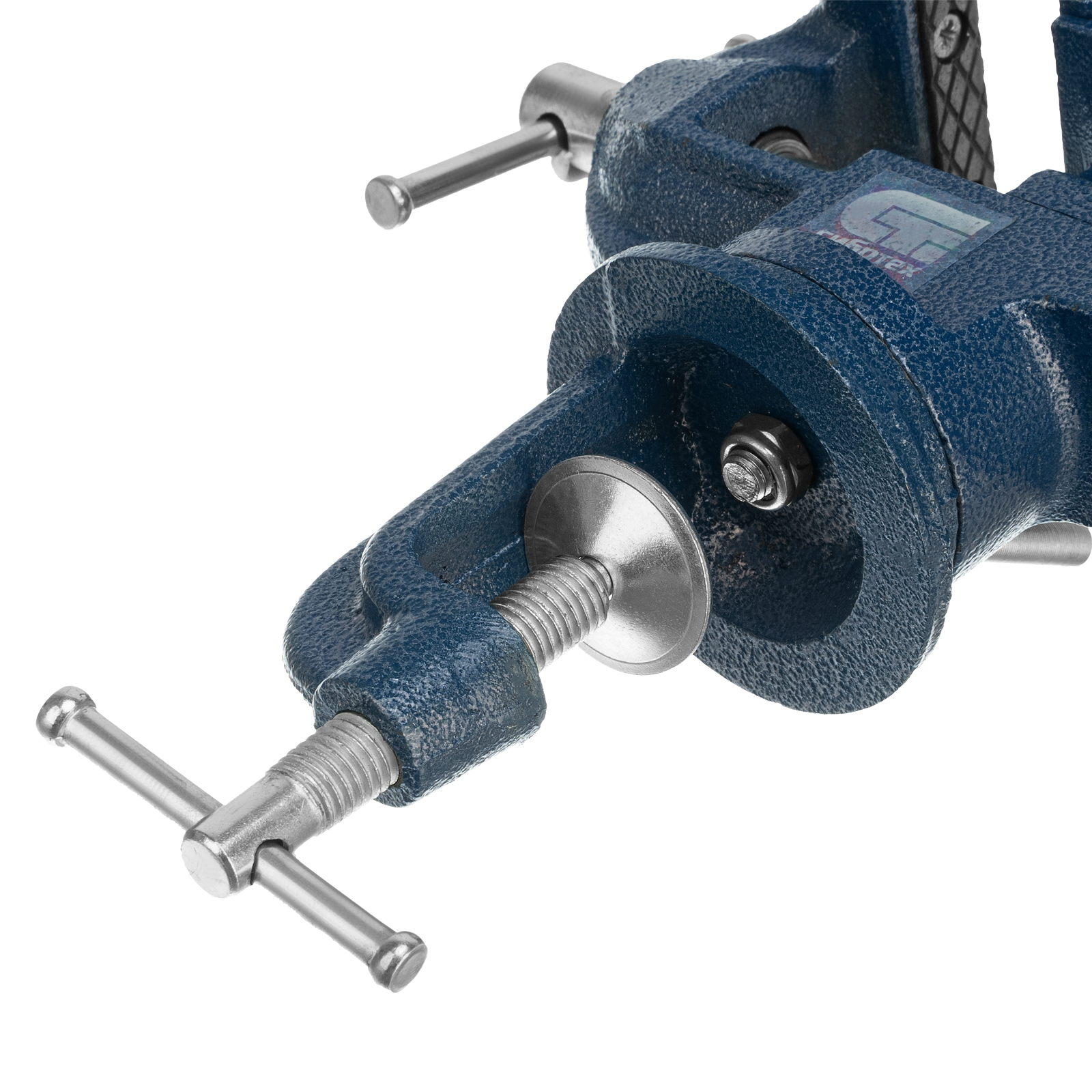 - Винтовой зажим позволяет быстро устанавливать и снимать тиски, поэтому их можно использовать на различных рабочих местах.