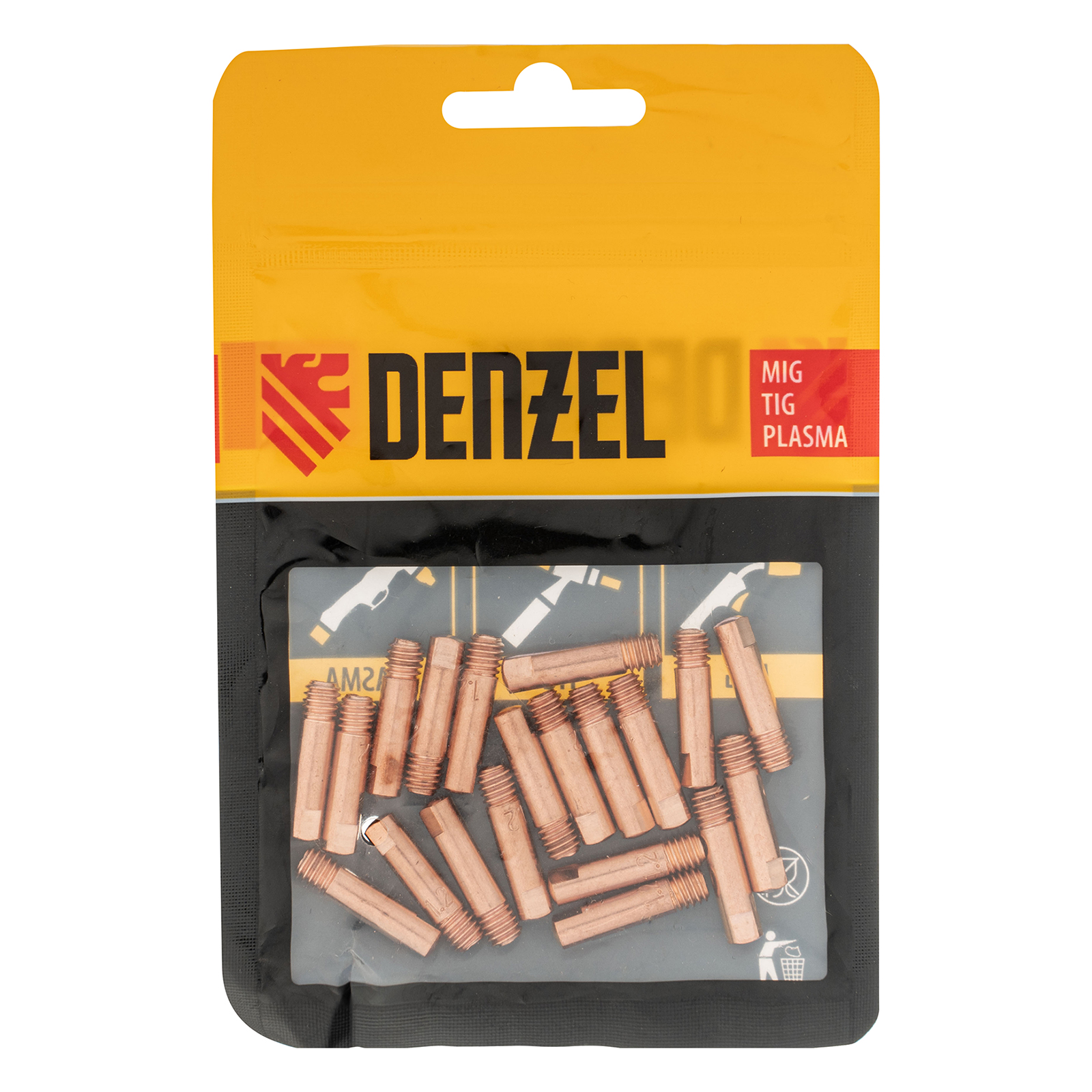 Токосъемный наконечник Denzel 93649 из меди E-CU, с резьбовым соединением M6х24, 20 шт. в упаковке, совместим со сварочными горелками типа 15 (в том числе с моделью Denzel 93641) и предназначен для подвода тока к проволоке диаметром 1,2 мм на выходе в область сварки. Используется для замены изношенной детали и позволяет быстро восстановить работоспособность горелки.