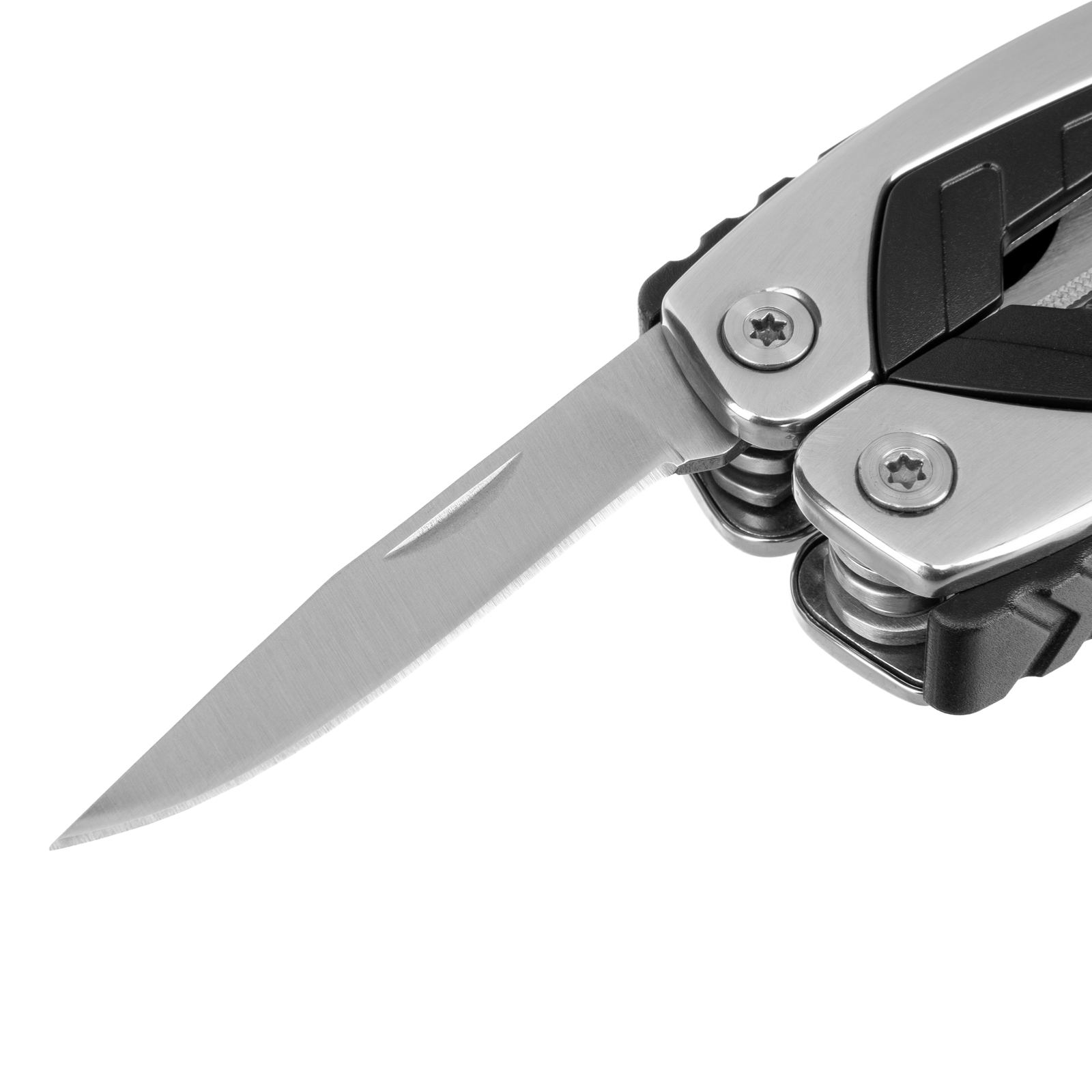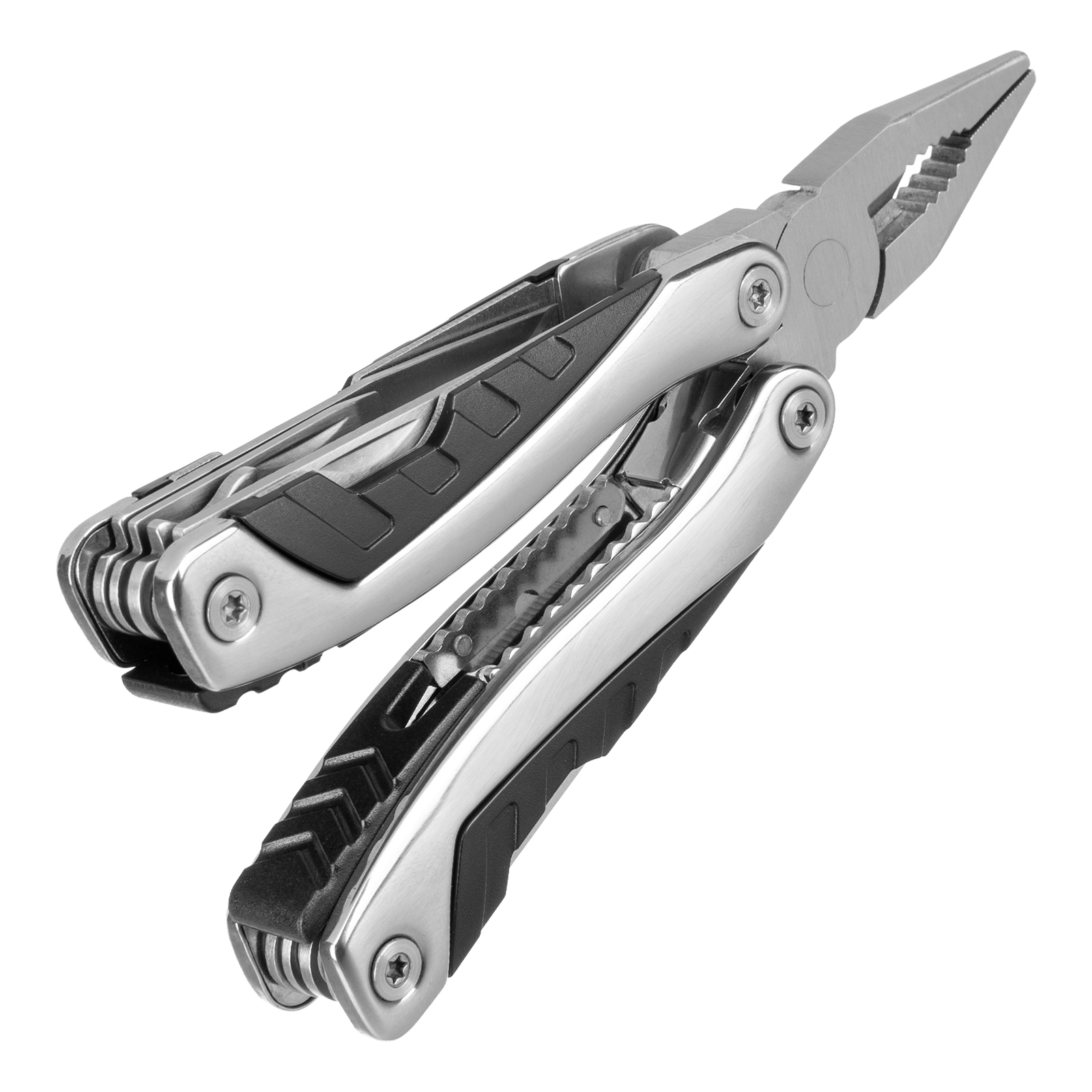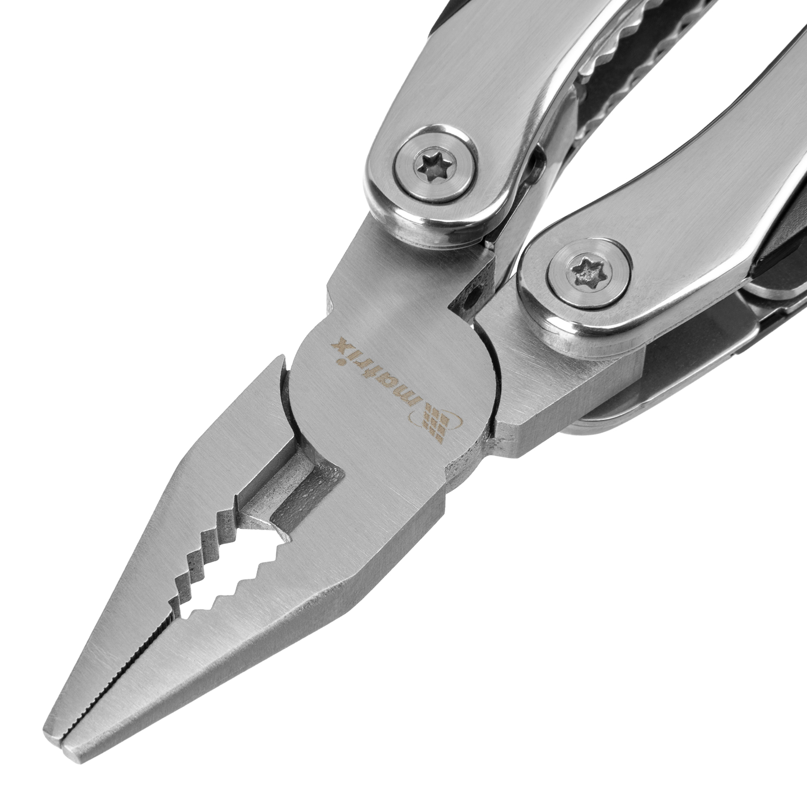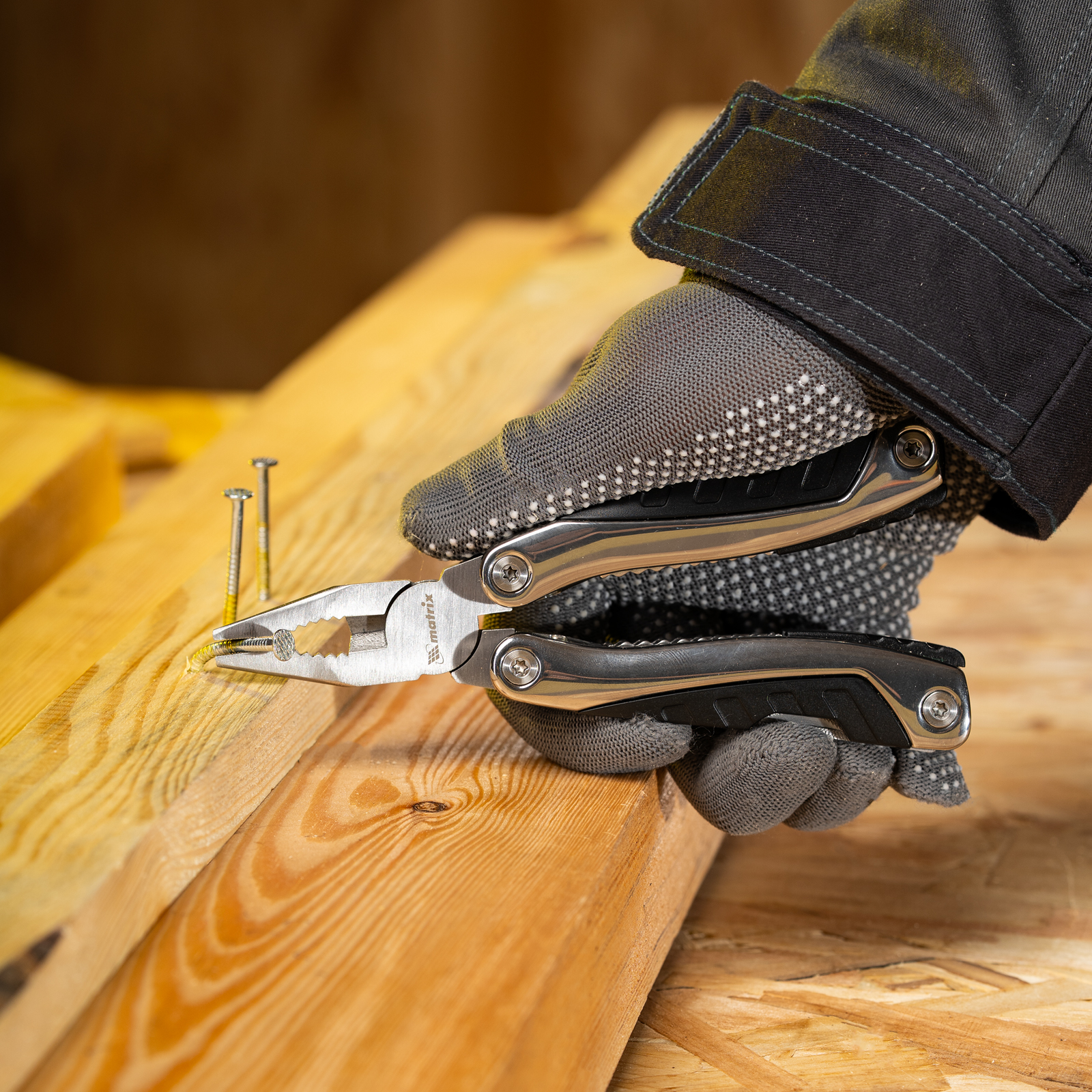 Трансформер Matrix 17623 длиной 160 мм имеет 15 функций и авторазжим, поставляется с чехлом. Может использоваться в гараже, т.к. включает длинногубцы с кусачками и захватом полукруглых предметов, а также отвертки и линейку. Трансформер пригодится в походе, на рыбалке или охоте, поскольку имеет в составе нож, пилу, открывалку, консервный нож, инструменты для чистки рыбы и удаления крючка. Благодаря пилке для ногтей мультитул будет полезен в быту.