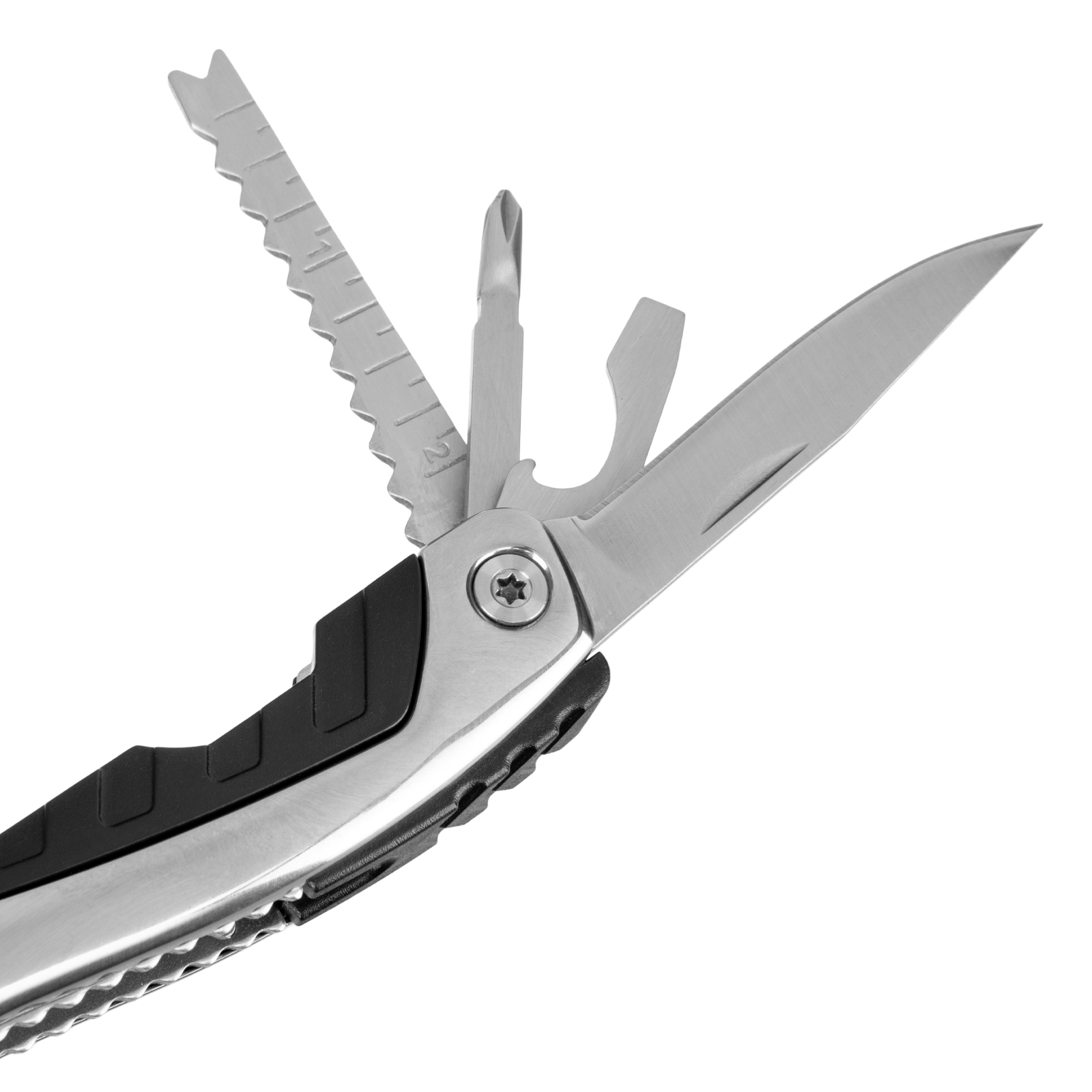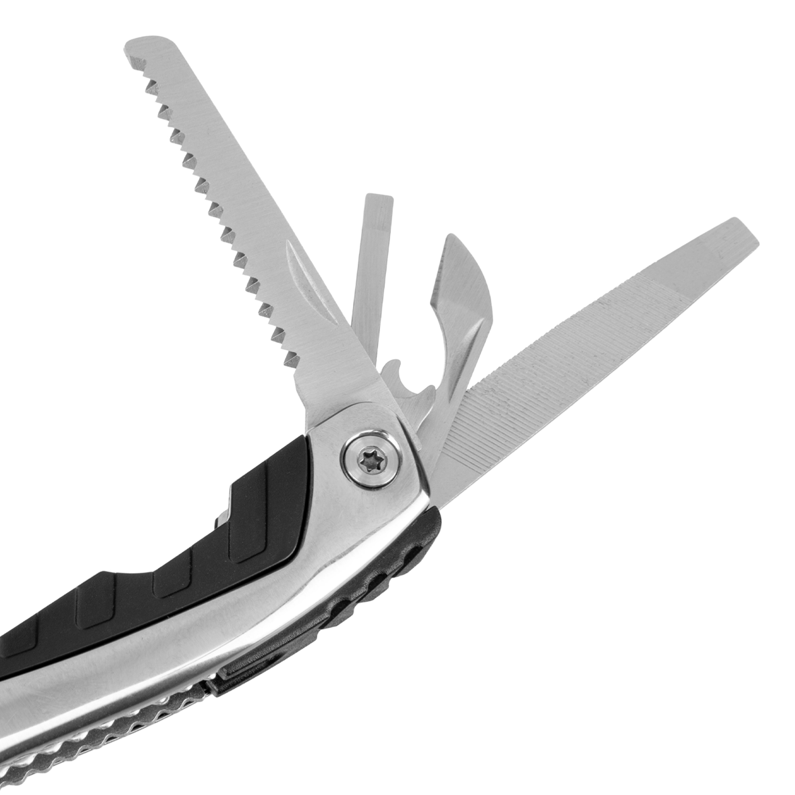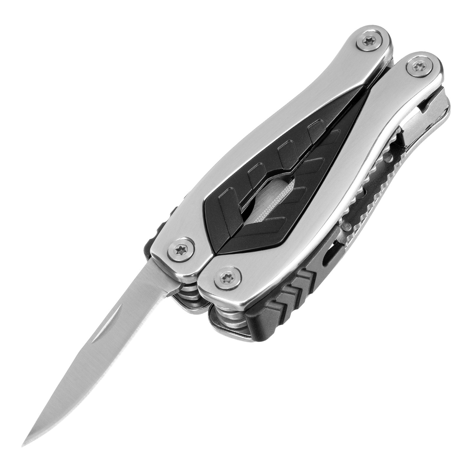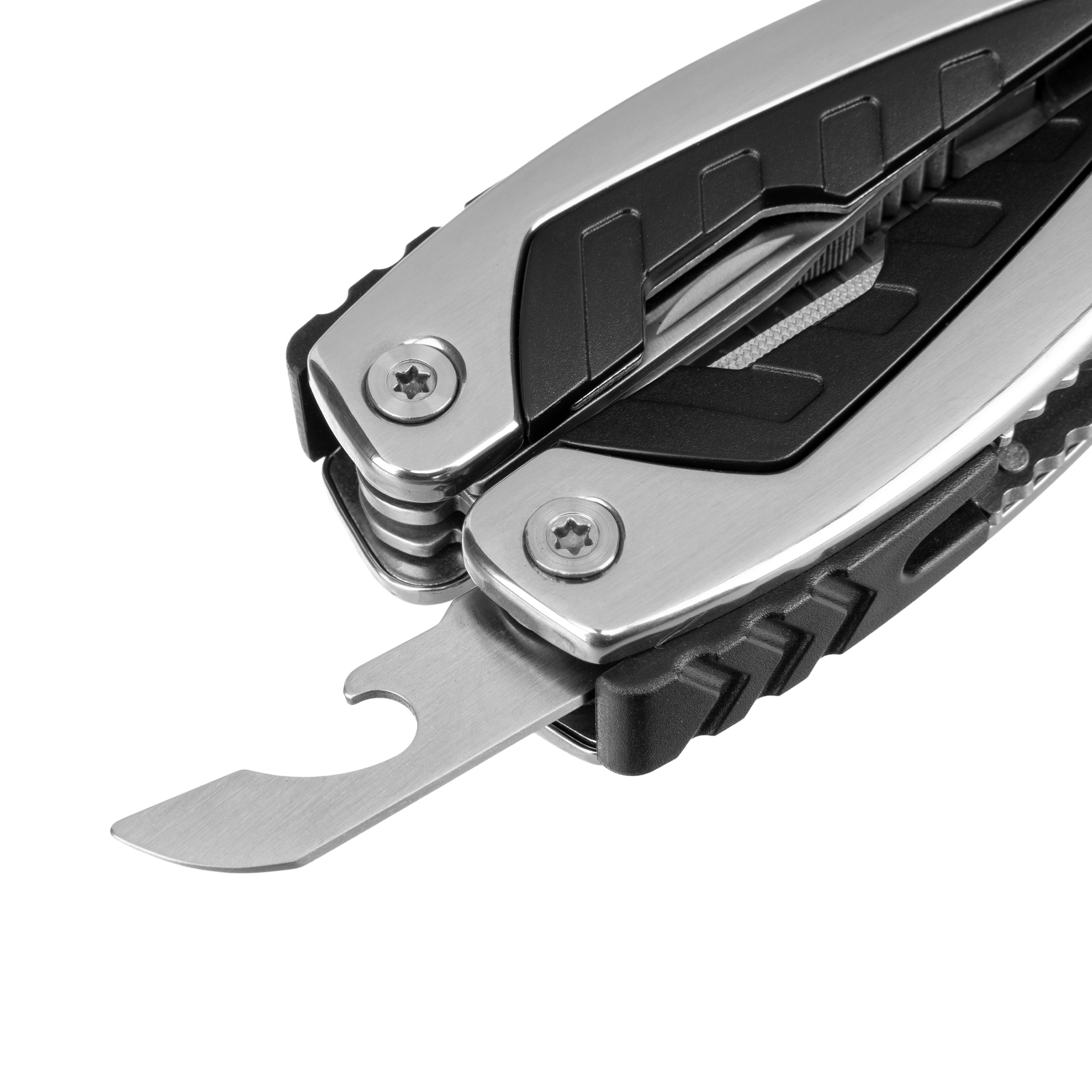 Трансформер Matrix 17623 длиной 160 мм имеет 15 функций и авторазжим, поставляется с чехлом. Может использоваться в гараже, т.к. включает длинногубцы с кусачками и захватом полукруглых предметов, а также отвертки и линейку. Трансформер пригодится в походе, на рыбалке или охоте, поскольку имеет в составе нож, пилу, открывалку, консервный нож, инструменты для чистки рыбы и удаления крючка. Благодаря пилке для ногтей мультитул будет полезен в быту.