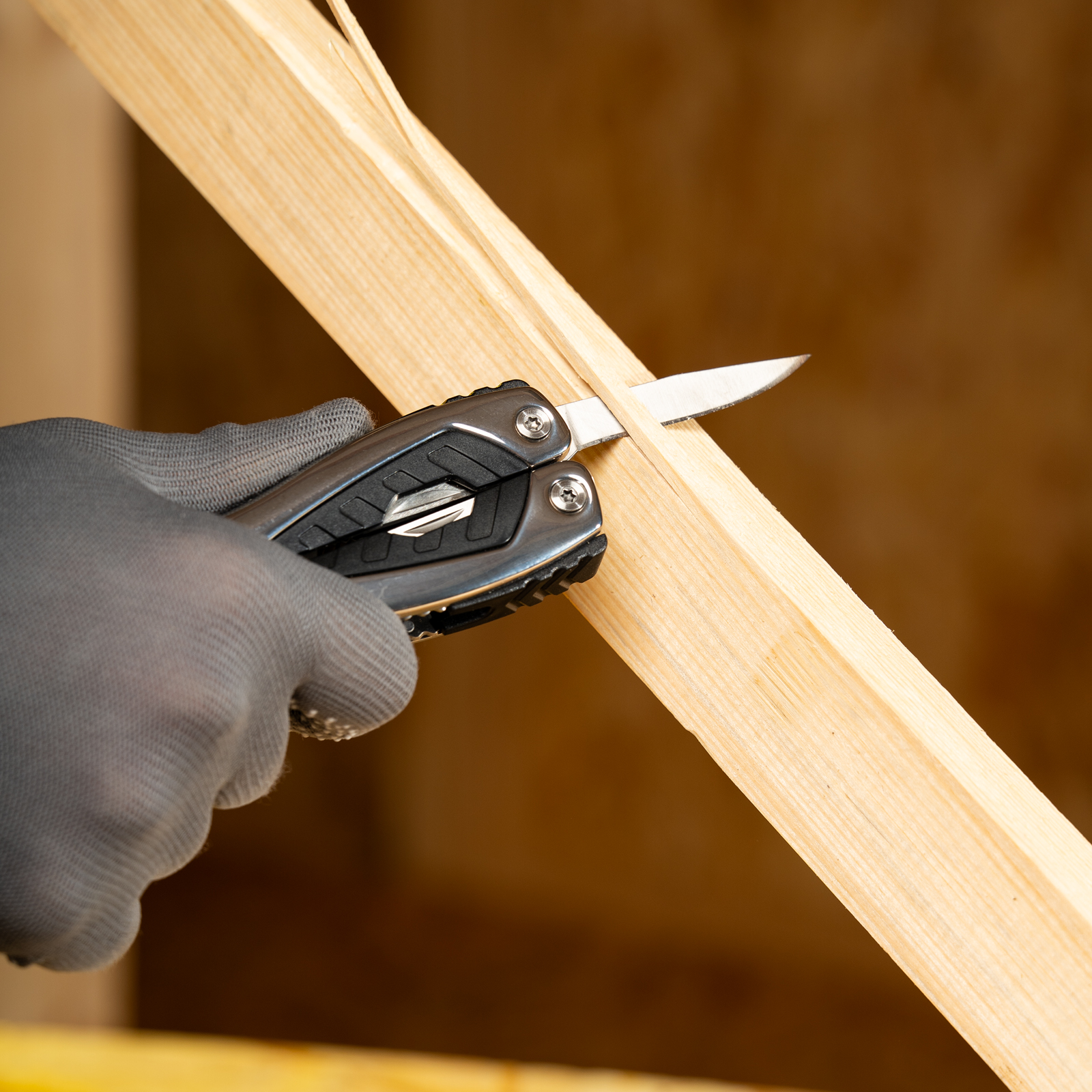 - Долговечность — нож и другие элементы изготовлены из прочной стали.