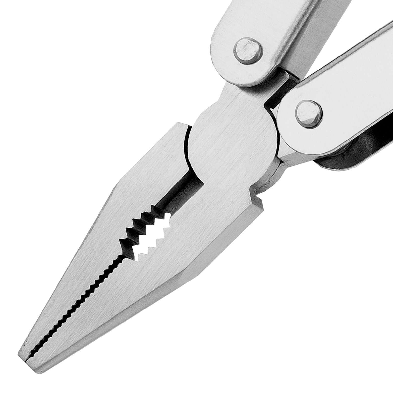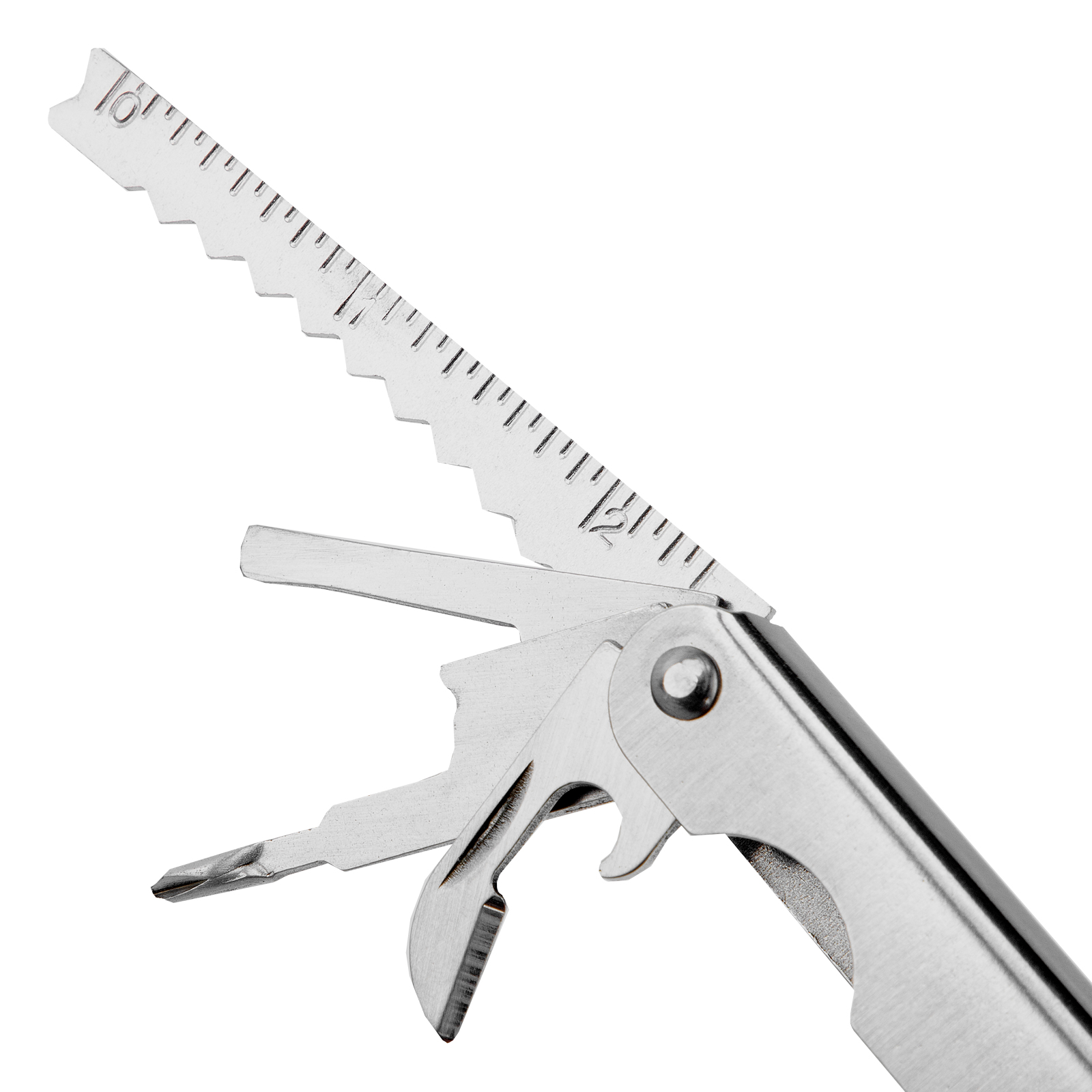 Трансформер Sparta 17610 с 15 функциями в рабочем положении имеет длину 156 мм, поставляется в чехле. Подходит для выполнения множества мелких работ: разрезания различных материалов, закручивания и откручивания крепежей, чистки рыбы, захвата или опиливания деталей, перекусывания проволоки, открывания бутылок и консервных банок. Многофункциональный инструмент пригодится на даче, в гараже, поездке, походе, на охоте или рыбалке.