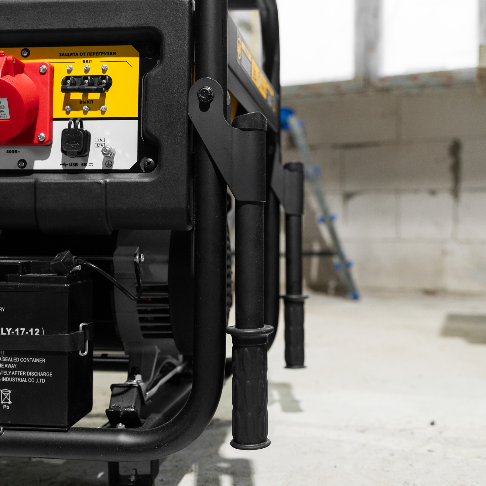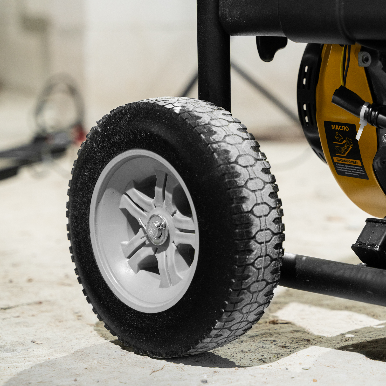 - Удобное использование — транспортировка генератора происходит быстро и без усилий.