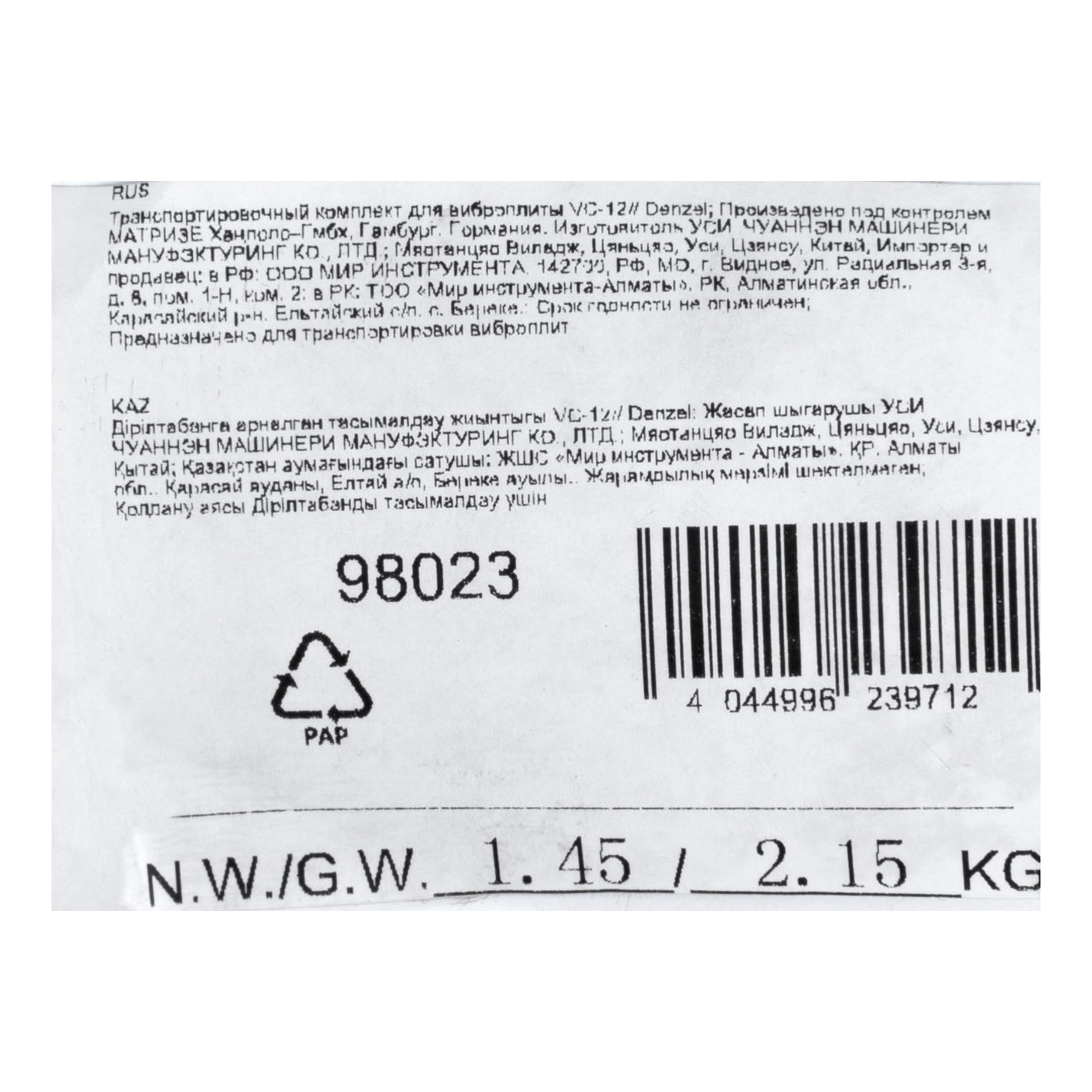 Транспортировочный комплект для виброплиты VC-12 Denzel в Воронеже