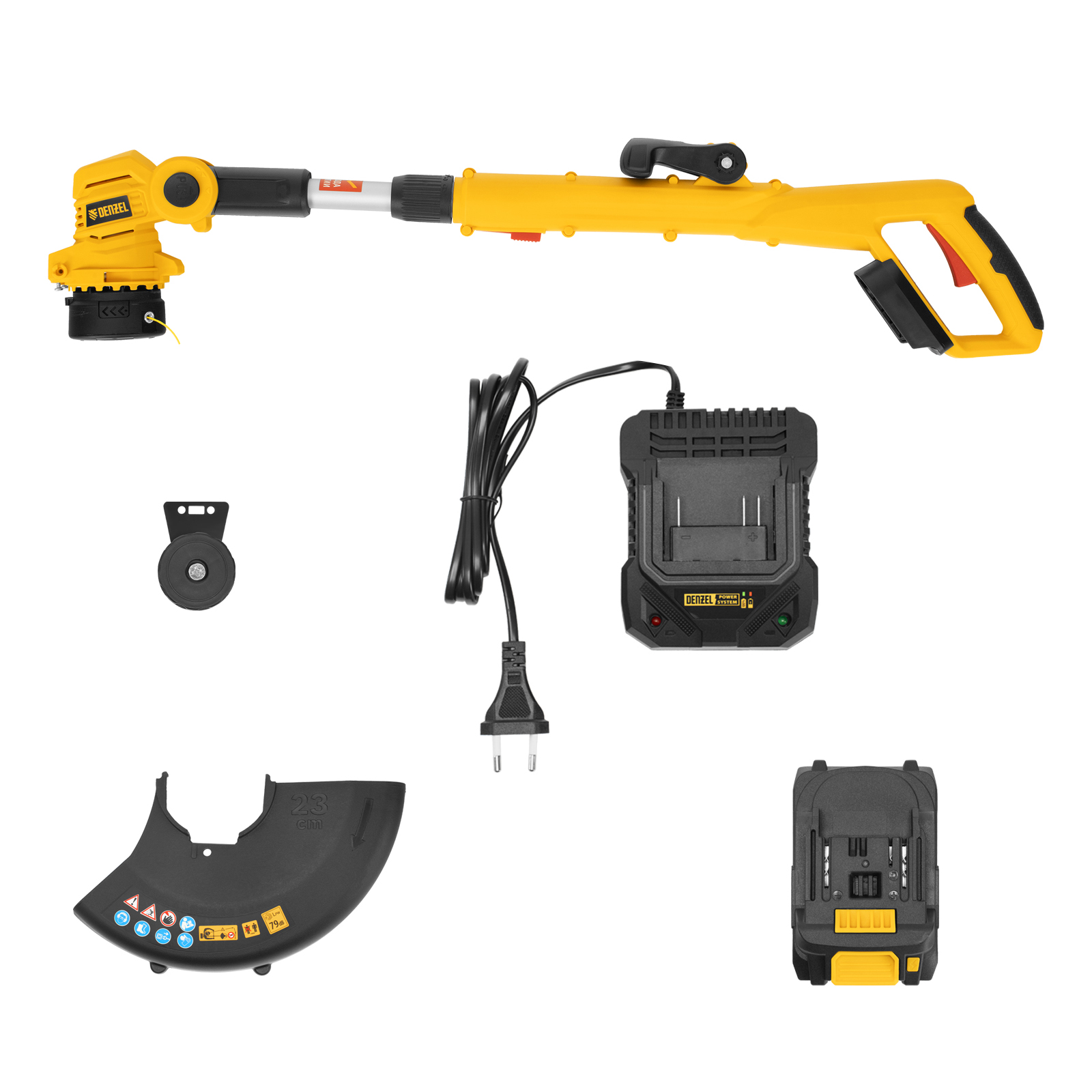 Аккумуляторный триммер Denzel GT-230 58701 предназначен для скашивания травы и сорняков, ширина скашивания составляет 230 мм. Работает от аккумулятора Li-Ion 20 В (универсальная платформа Denzel Power System), благодаря чему позволяет свободно перемещаться по участку. Аккумулятор Li-Ion без эффекта памяти допускает подзарядку без потери емкости, обеспечивает стабильную работу в течение длительного времени. Триммер предназначен для бытового использования, будет полезен владельцам дачных участков.